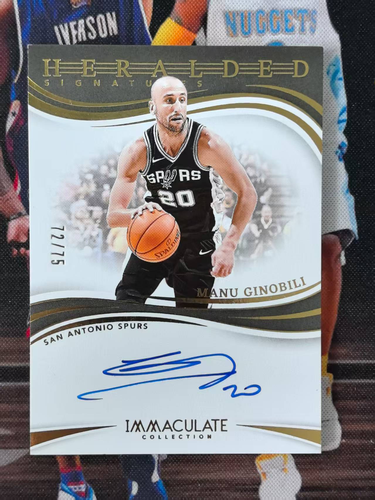 【章鱼拍卖 卡到预付80%】2023-24 PANINI IMMACULATE 马刺 MANU GINOBILI 妖刀 马努 吉诺比利 签字 卡签 72/75编 签了同背号码#20 郭总
