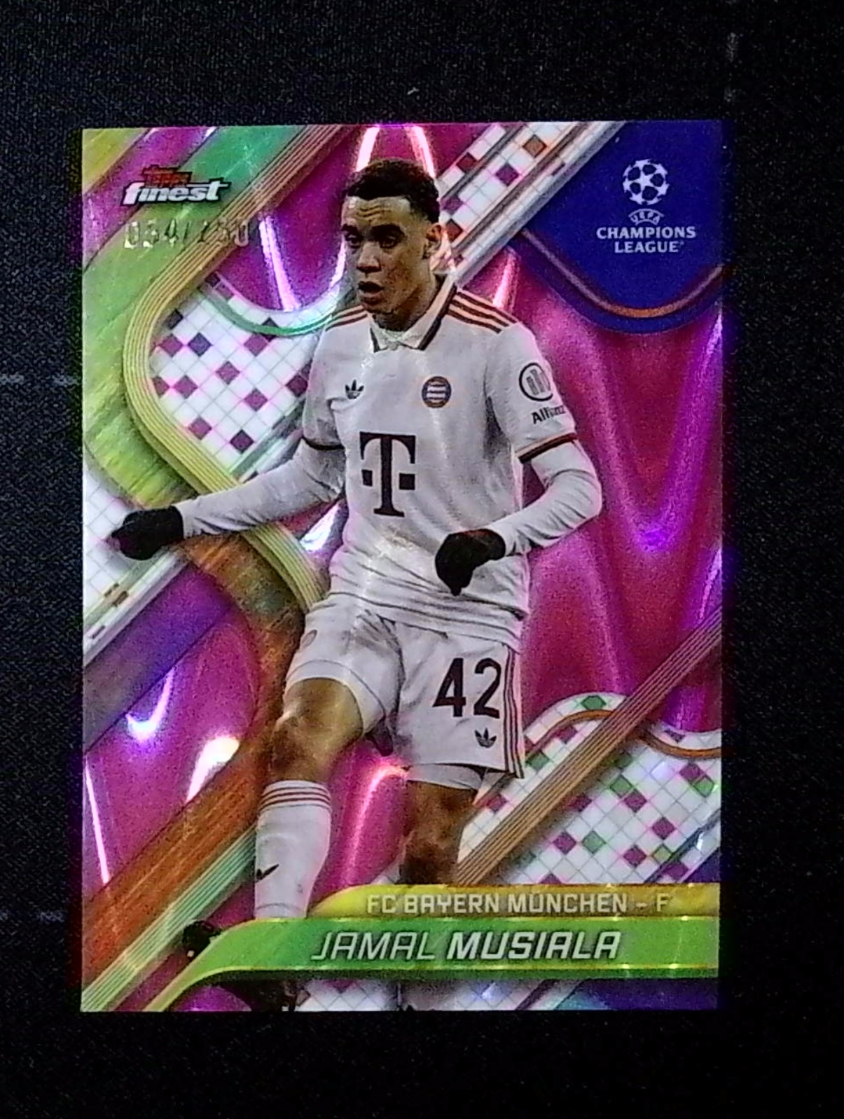 2025 Topps Finest Jamal Musiala 欧冠 Finest 贾马尔 穆夏拉 拜仁慕尼黑 粉熔岩折 54/250编 收藏必备 卡品如图(铁哥)