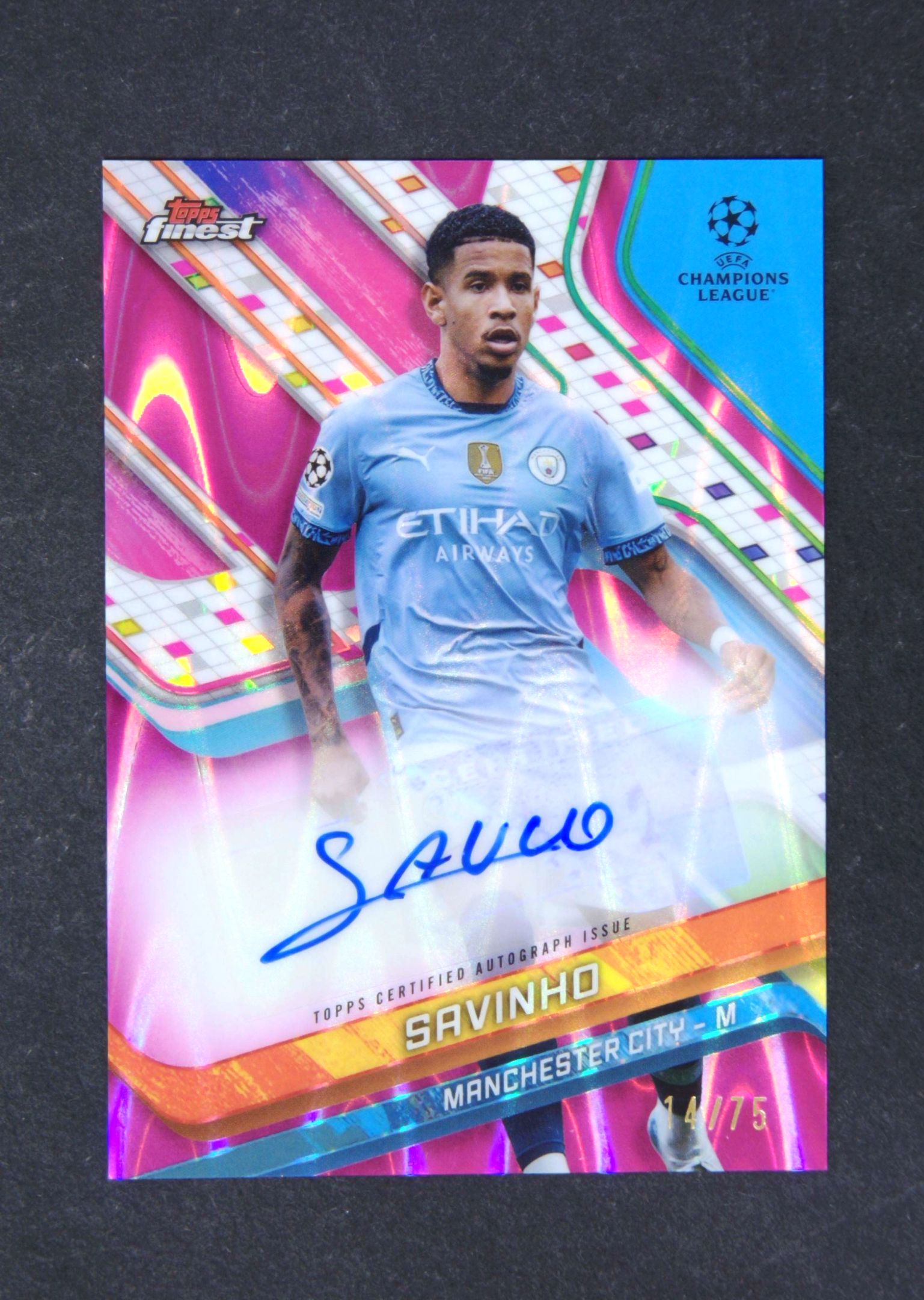 2024-25 Topps finest Savinho LU酱专业代卖 (Min01)欧冠 曼城 萨维尼奥 粉波纹折 75编 签字 完美墨迹 finest 卡品如图 收藏佳品