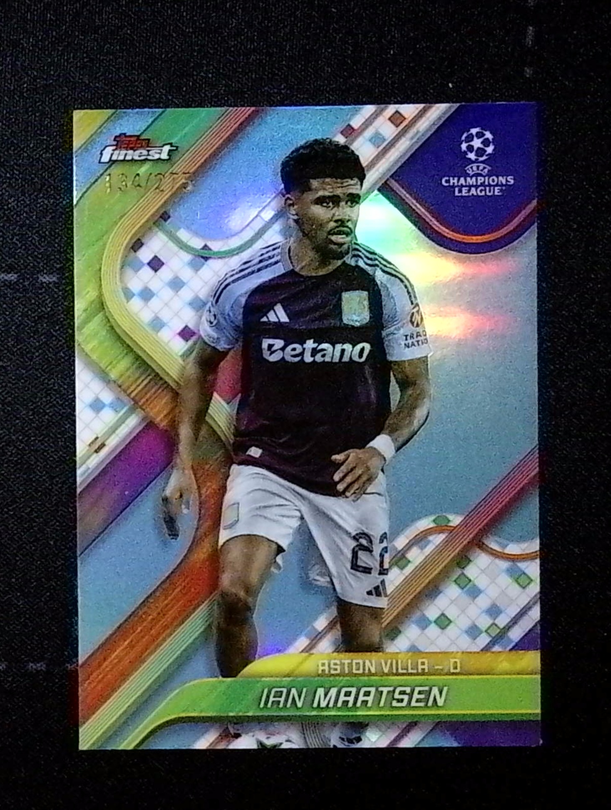 2025 Topps Finest Ian Maatsen 欧冠 Finest 阿斯顿维拉 伊恩 马特森 天蓝折 134/275编 收藏必备 卡品如图(铁哥)
