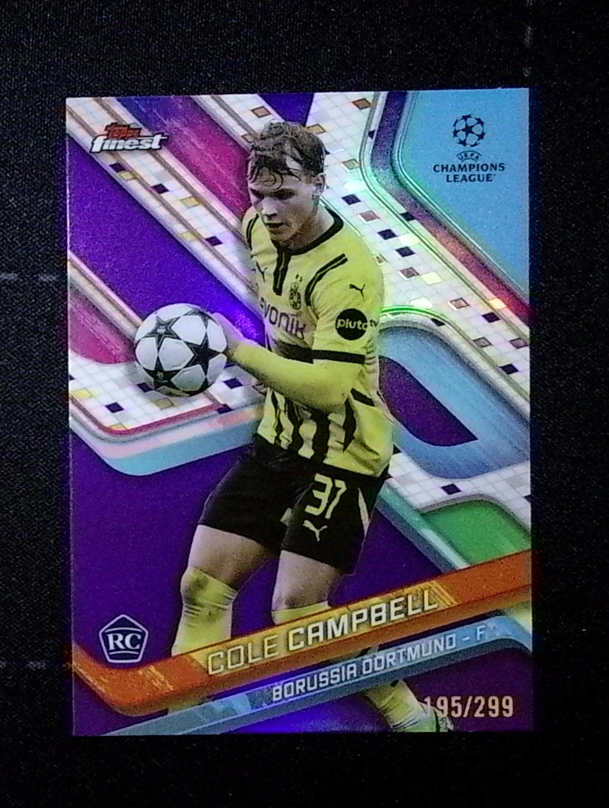 2025 Topps Finest cole campbell RC 欧冠 Finest 多特蒙德 科尔 坎贝尔 新秀 紫折 195/299编 收藏必备 卡品如图(铁哥)