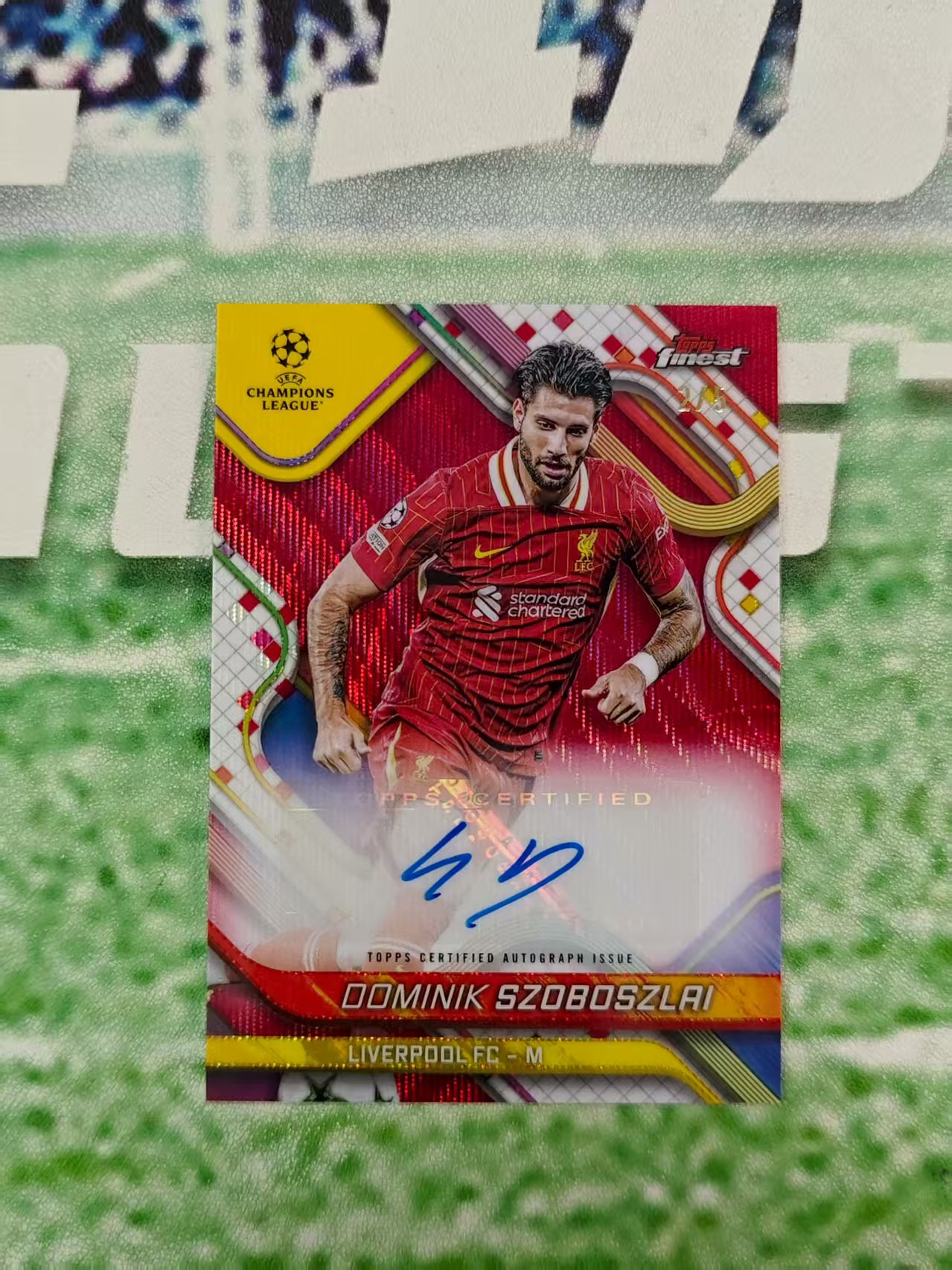 2025 Topps Finest Dominik Szoboszlai 欧冠 英超 利物浦 多米尼克·索博斯洛伊 签字 红波纹折 2/5编 瑕疵如图 大john