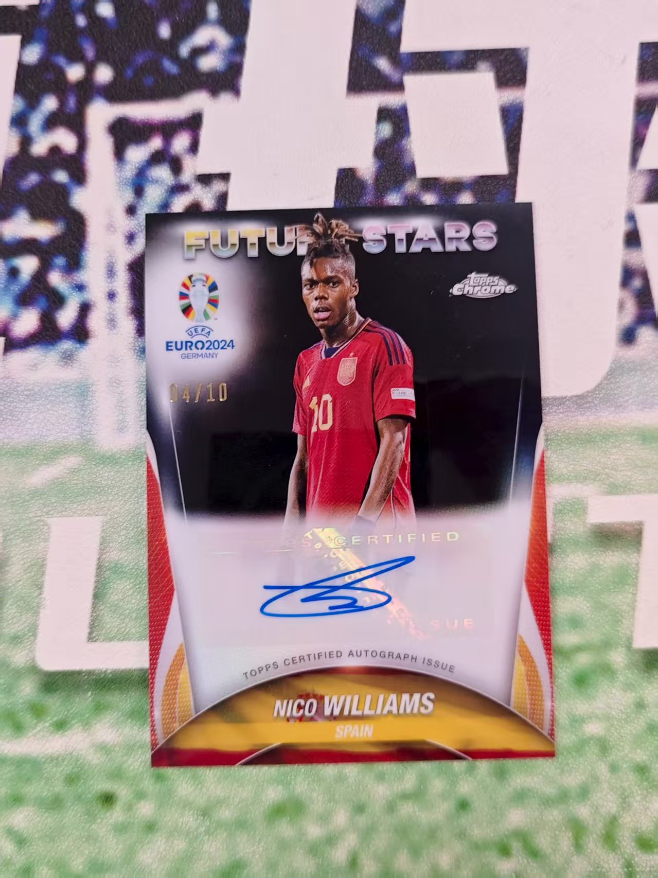 2024 Topps Chrome Nico Williams TC 欧洲杯 西班牙 尼科·威廉姆斯 签字 黑折 10编 FUTURE STARS 瑕疵如图 大john