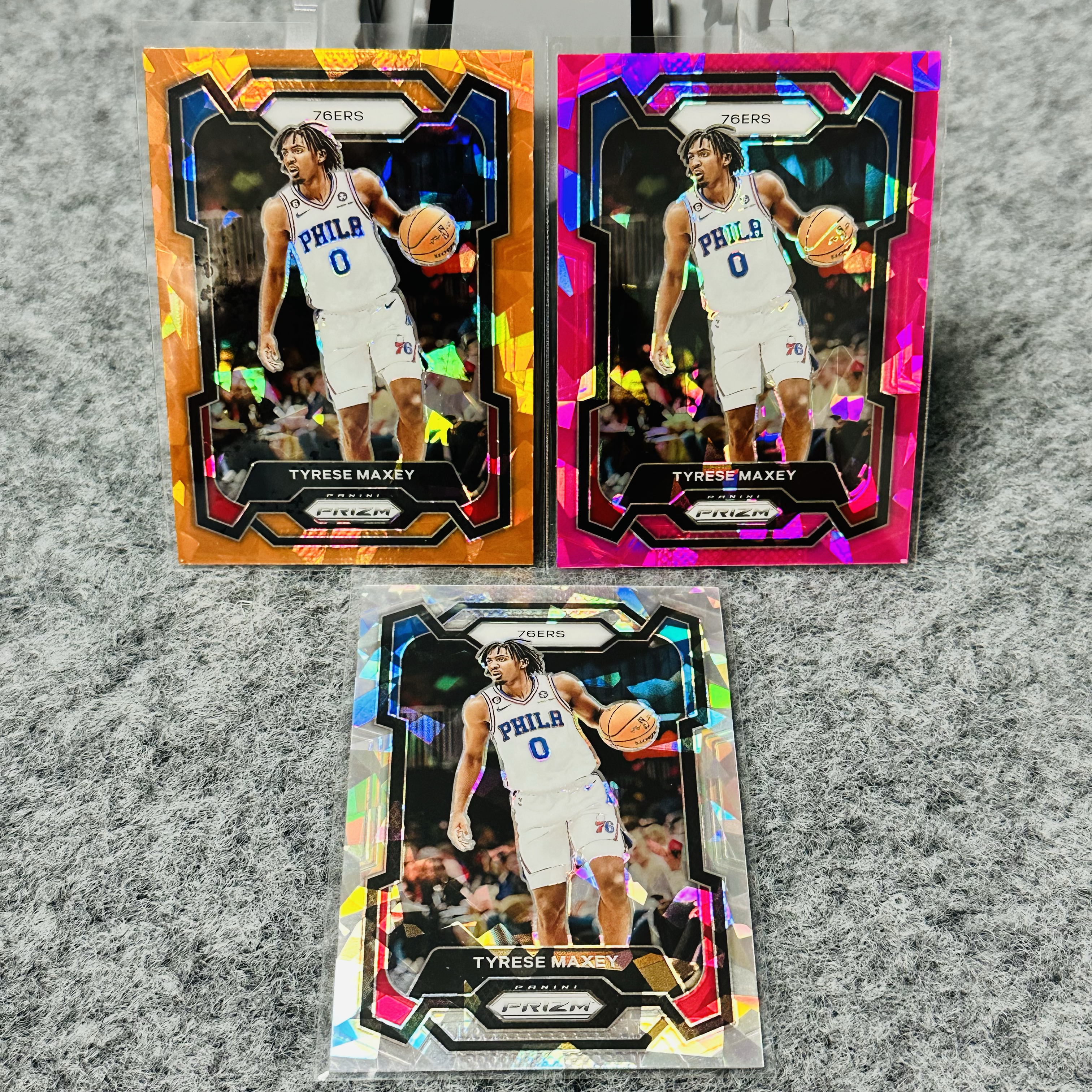 2023-24 Panini Prizm Tyrese Maxey 马克西 费城76人核心 三张打包lot 粉碎冰 橙碎冰 银碎冰 折射系列 彩虹套 凑套收藏 专收必备 卡品通行如图 免费代卖