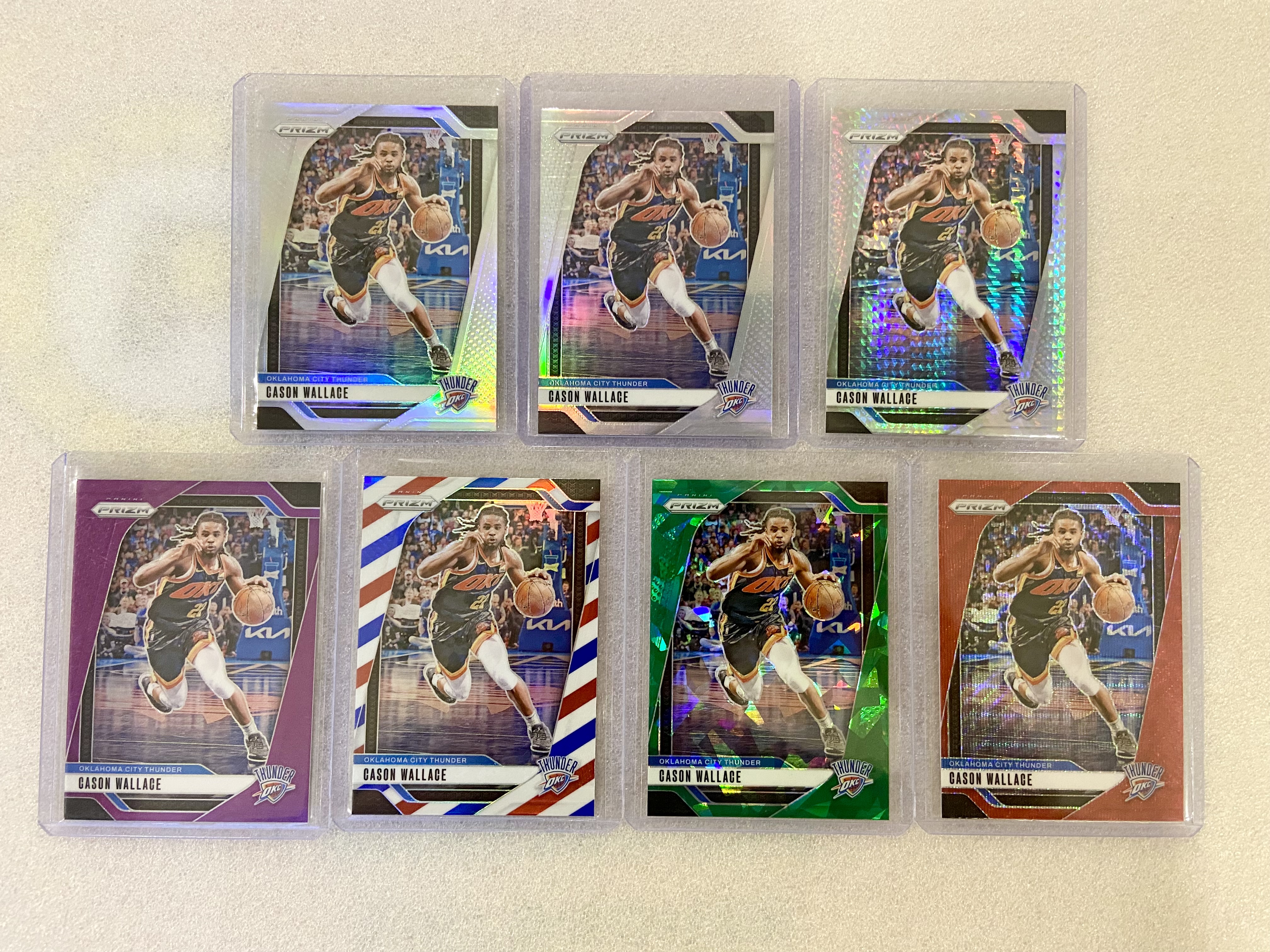 2024-25 Panini Prizm Cason Wallace 【雨果拍卖】卡森 华莱士 雷霆 /99编 紫折 银折 hyper 三色 绿碎冰 红波纹 打包7张lot 凑套彩虹 卡品如图