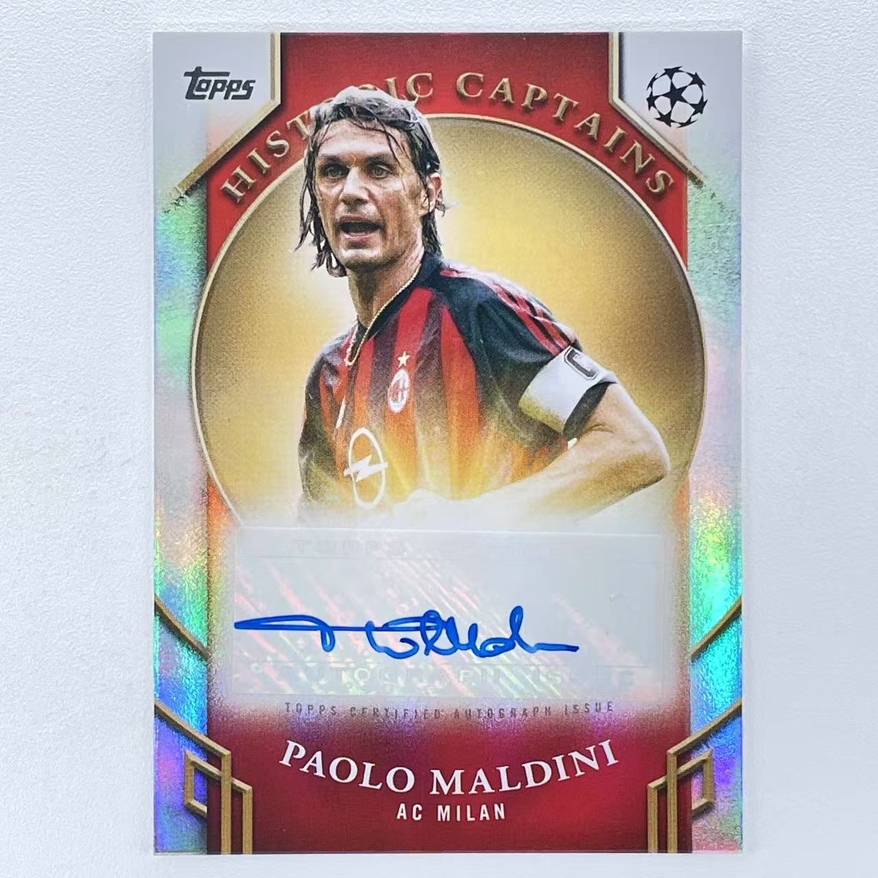 F 2024-25 Topps UCC Paolo Maldini 保罗 马尔蒂尼 意大利 AC米兰 意伟左 欧冠 签字 签名 Historic Captains 功勋队长 特卡 银折 折射 轻印如图 ROYE#