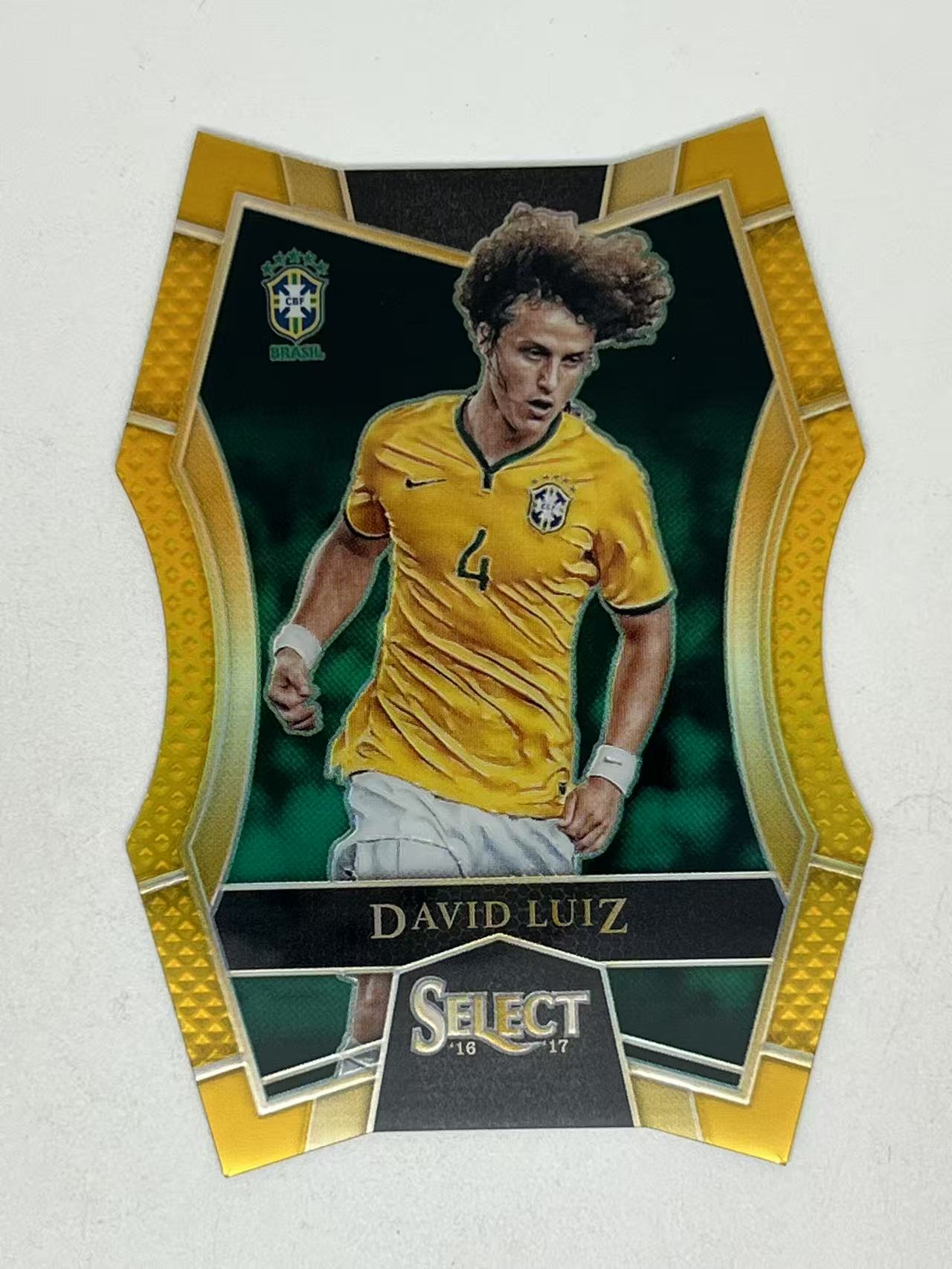 2016-17 Panini Select David Luiz 【宁动拍卖】select 巴西 切尔西 巴黎 阿森纳 大卫 路易斯 06/10编 金折 折射 异形切割 稀有老卡 鸭脖
