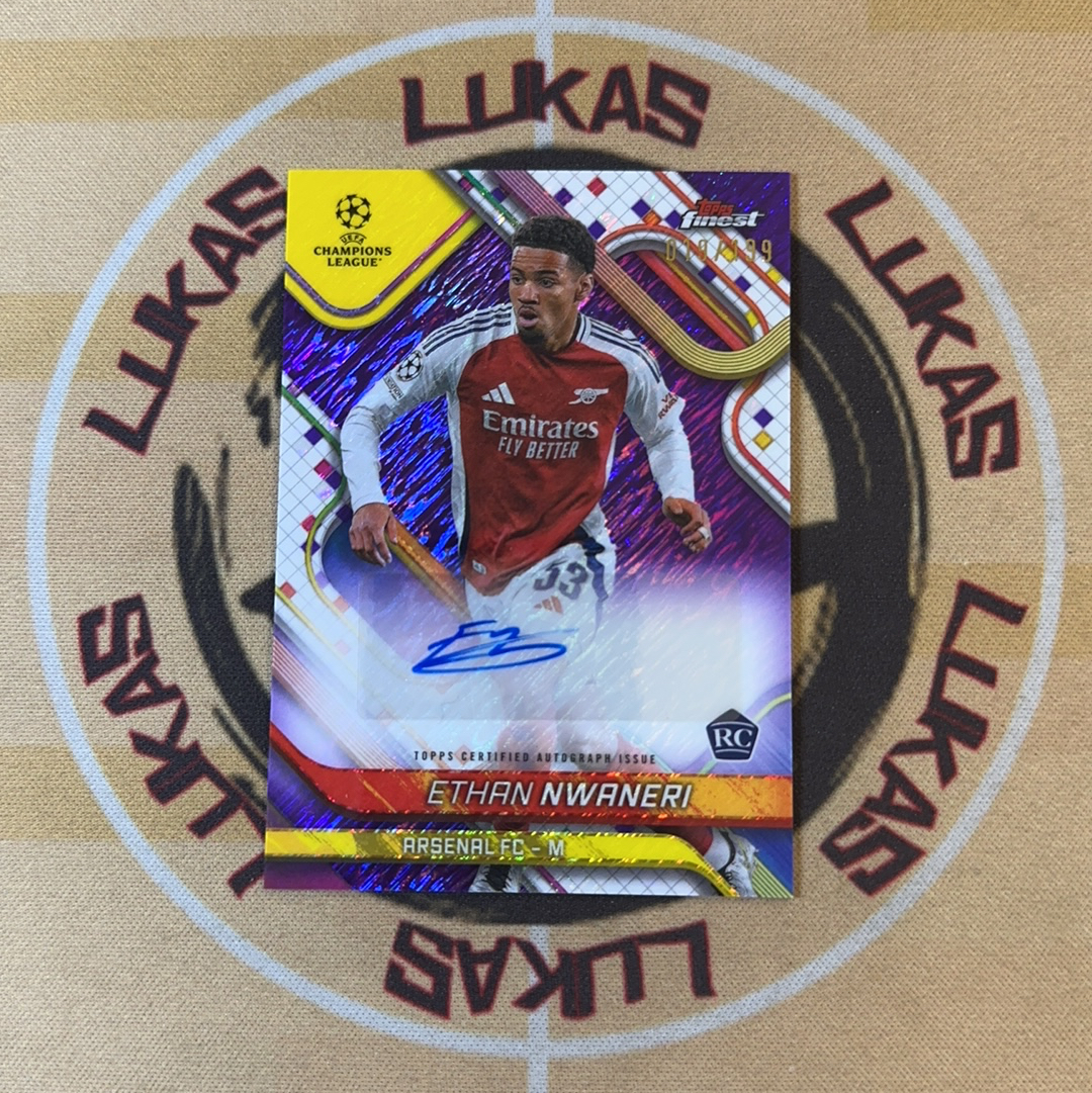 撸卡厮 Lukas 2024-25 Topps Finest UCC 欧冠 阿森纳 新秀 rc 恩瓦内里 Nwaneri 19/199编紫Shimmer折 大比例 潜力无限 专收必备 角微瑕(瘫)