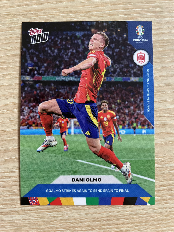 2024 Topps now Dani Olmo 【hellfire拍卖】topps now系列 2024欧洲杯 西班牙 奥尔莫 奥尔默 半决赛打入致胜球帮助球队晋级决赛并最后夺冠 本届杯赛表现出色