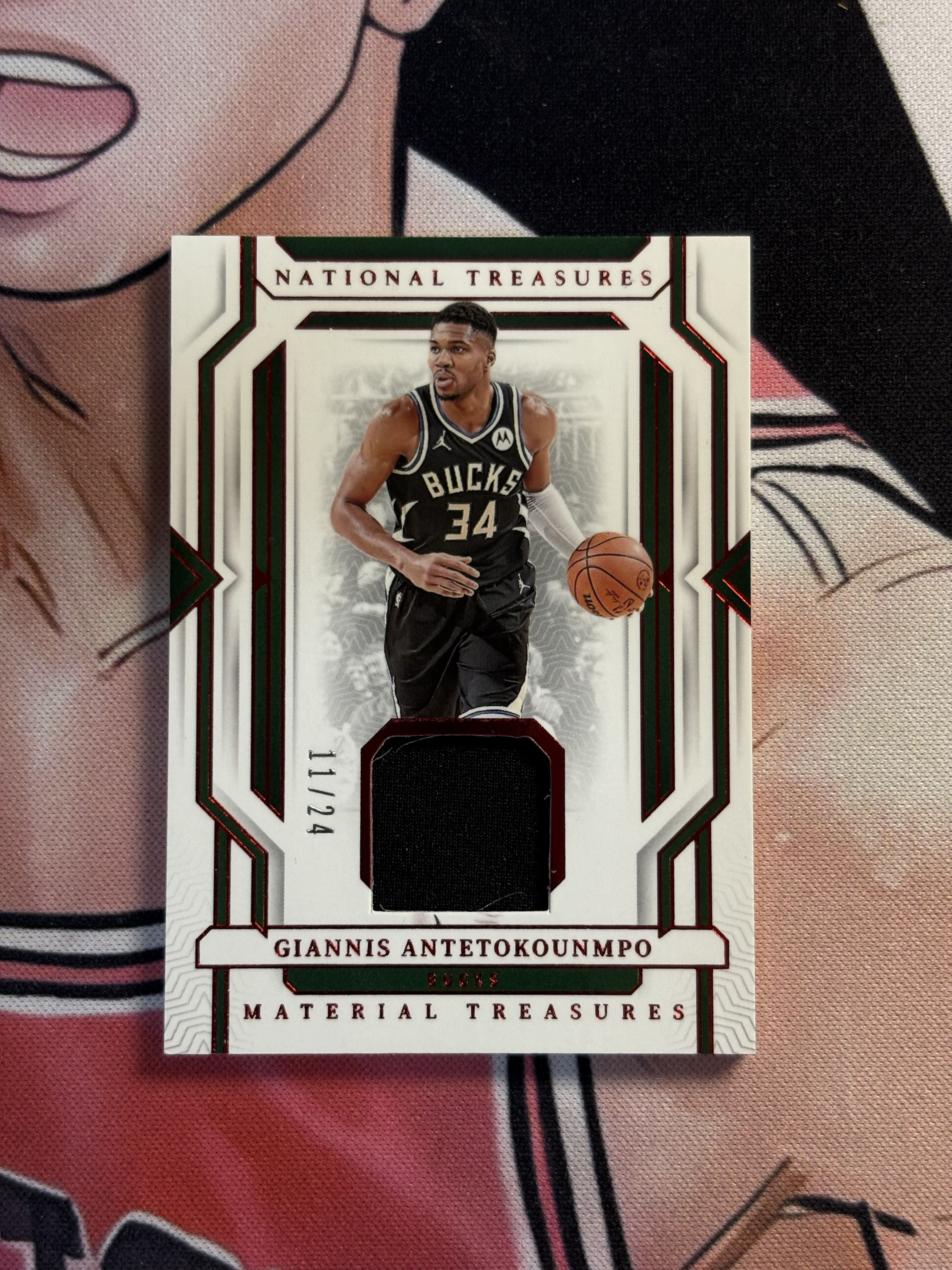 2023-24 Panini National Treasures Giannis Antetokounmpo 扬尼斯 阿德托昆博 国宝 物料 24编 红平行 GU 亲穿 雄鹿 字母哥(宏图代卖)
