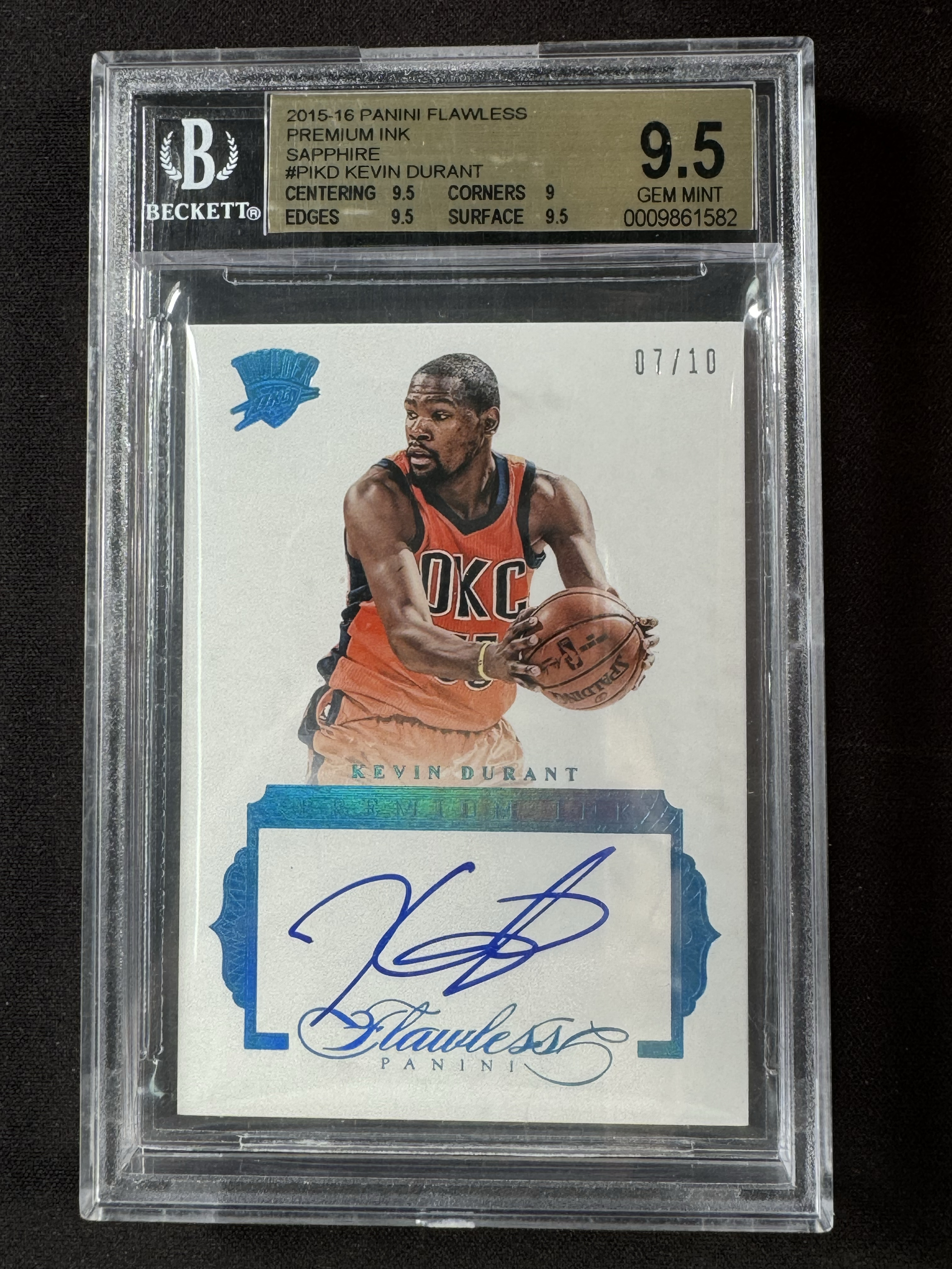 2015-16 Panini Flawless Kevin Durant 手提 雷霆 杜兰特 /10编 Premium ink签 湖水蓝闪 签字 卡签 BGS9.5+10分 金标