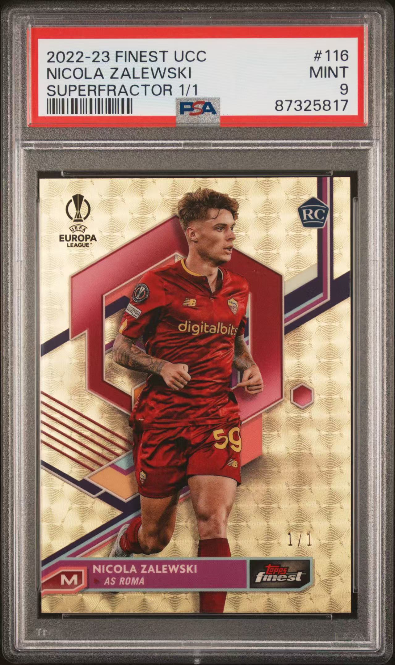 【宁动拍卖】2022-23 Topps Finest NICOLA ZALEWSKI 欧冠 罗马 尼古拉 扎莱夫斯基 新秀RC 1/1编 ofo 爆金折 PSA评级9分 波兰新星 投资必备 卧龙