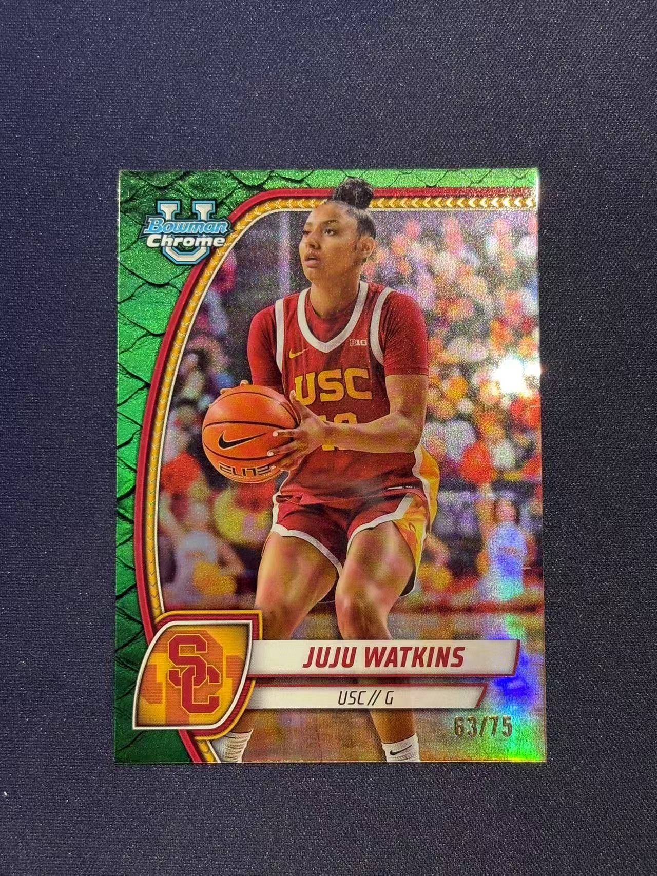 【梦卡拍卖】2025 Topps Bowman Chrome RC Juju Watkins 大学Bowman 南加州 朱朱 沃特金斯 新秀 签字 蓝折 绿蛇皮折 /75编 #DD# 小力力