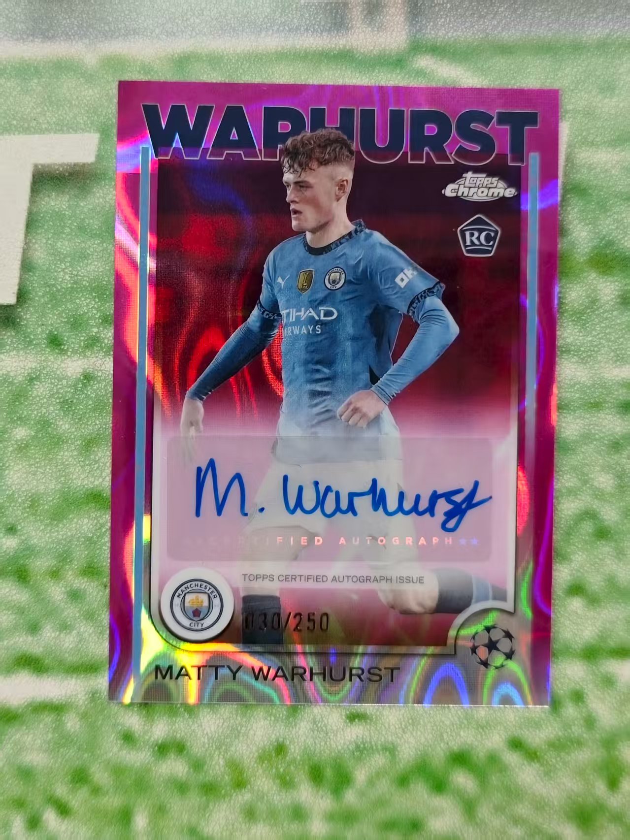 2025 Topps Chrome MATTY WARHURST TC 欧冠 英超 曼城 新秀 rc 马蒂·沃赫斯特 签字 紫熔岩折 250编 瑕疵如图 key
