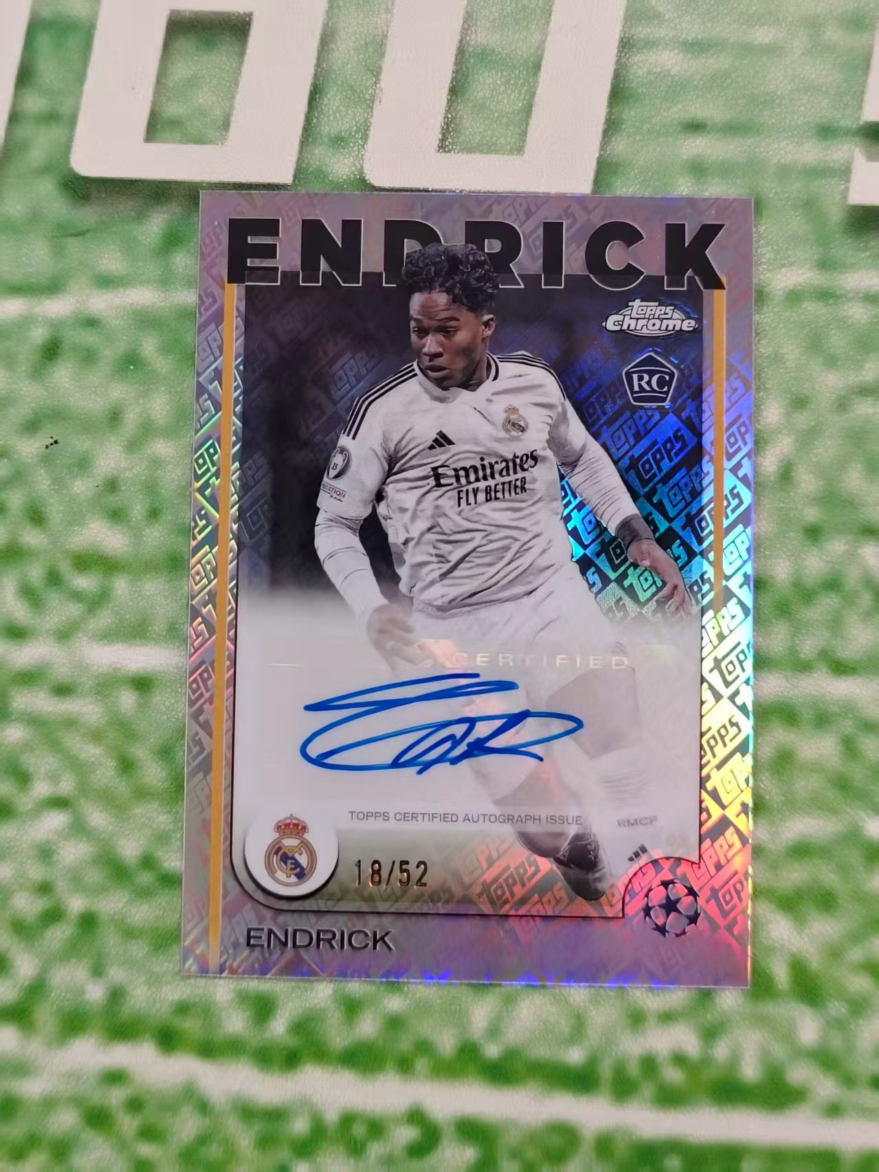 2025 Topps Chrome endrick RC Chrome 皇家马德里 新秀 恩德里克 topps折 签字 贴签 墨迹湛蓝 52编 微微瑕 拍卡请看细节 banma