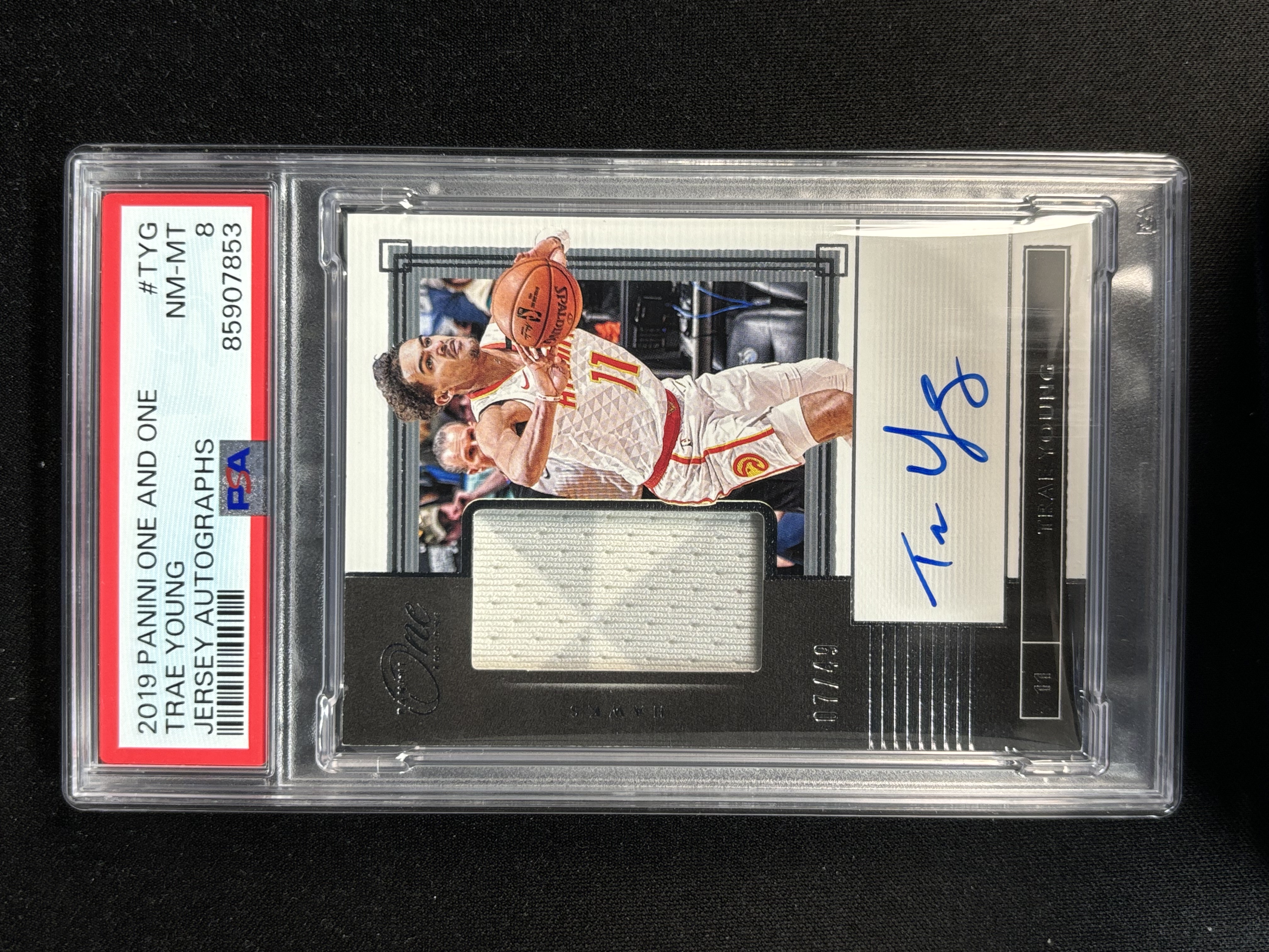 2019-20 Panini ONE Trae Young OAO 老鹰 特雷杨 吹杨 纽约市长 /49编 JA 球衣物料卡签 签字 PSA8分评级卡-咿呀-【小幻拍卖】A