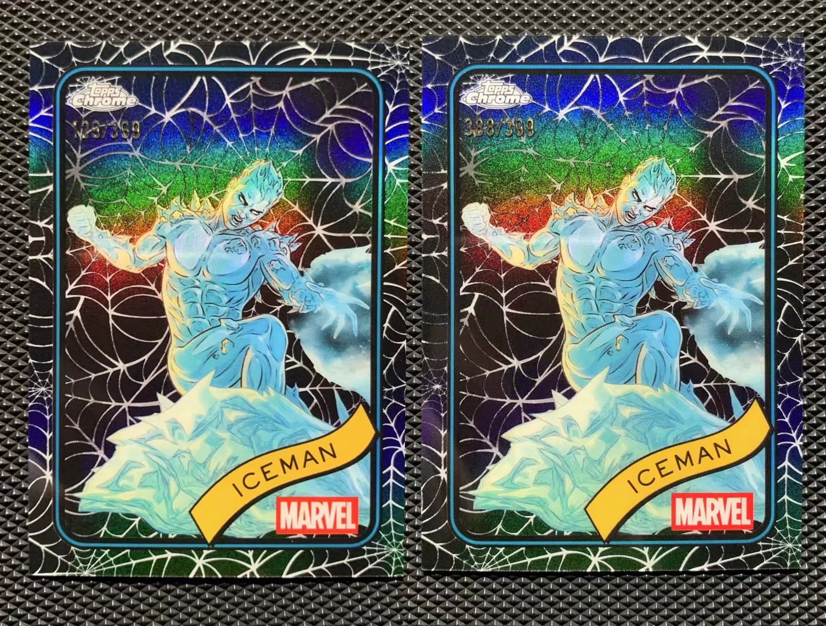 2025 Marvel Topps Chrome ICEMAN TC 漫威 X战警 冰人 /399编 蜘蛛网折 折射 带编base 两张打包lot 品见大图