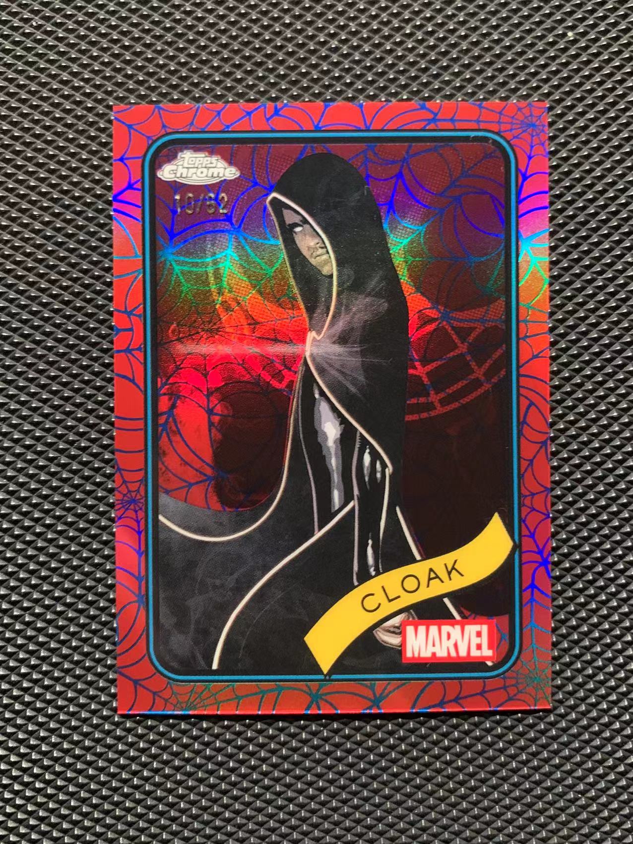 2025 Marvel Topps Chrome CLOAK TC 漫威 斗篷 /62编 红蓝蜘蛛网折 折射 带编base 品见大图