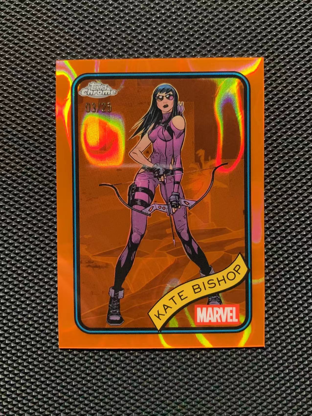 2025 Marvel Topps Chrome KATE BISHOP TC 漫威 女鹰眼 凯特 毕肖普 /25编 橙熔岩lava折 折射 带编base 品见大图