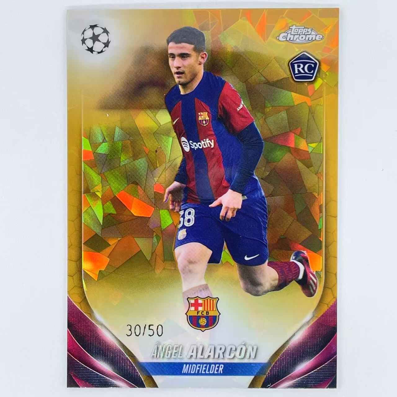 2023-24 Topps Sapphire Chrome Alarcon RC 欧冠蓝宝石 西班牙 巴萨 阿拉尔孔 新秀 50编 金碎冰折 亚马尔加维佩德里莱万拉菲尼亚费尔明库巴西贝尔纳尔队友 B
