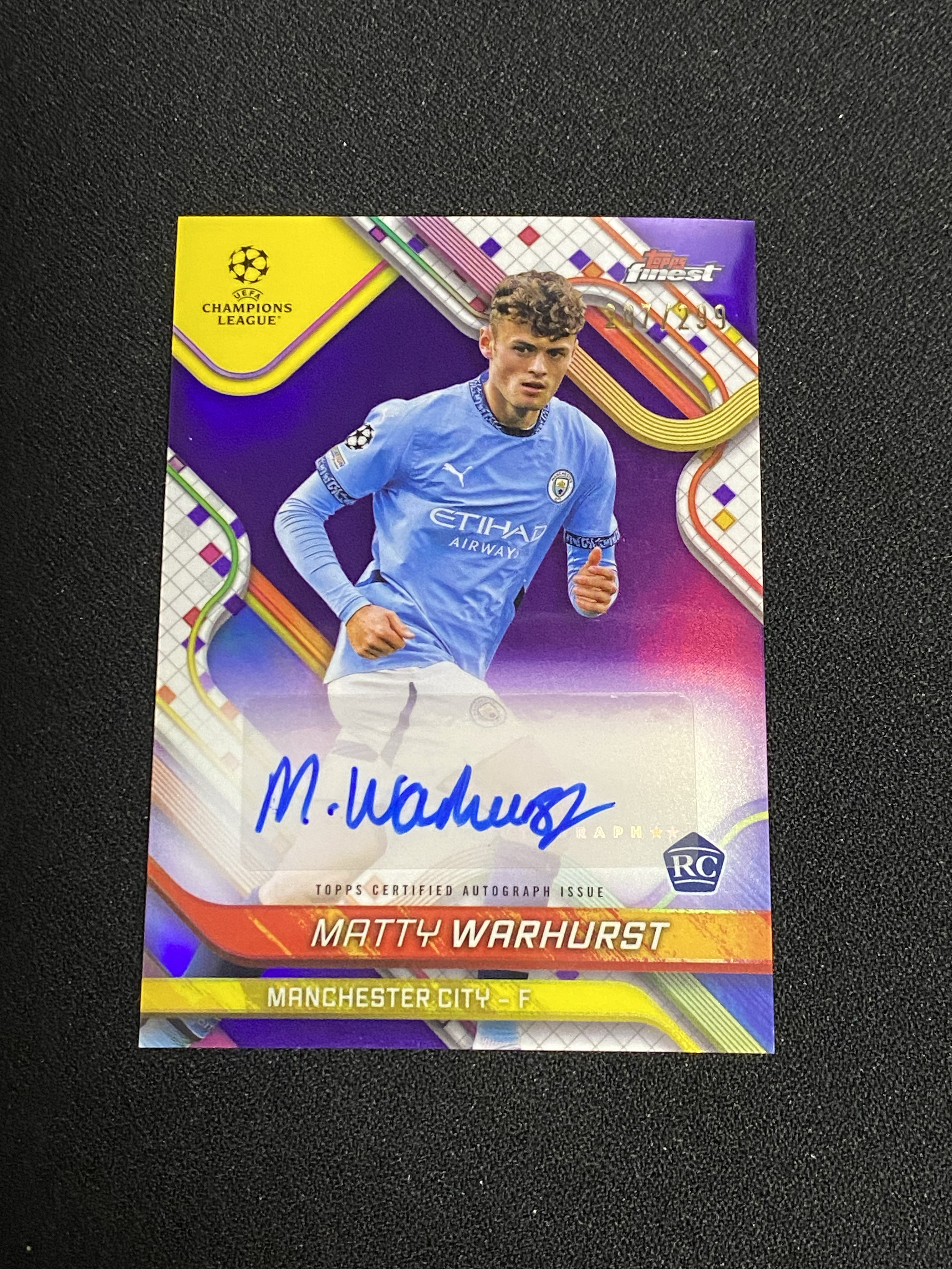 【胡子球手】2025 Topps Finest Matty Warhurst RC 欧战 曼城 新秀 马蒂 沃赫斯特 /299编 紫折 签字 胖总