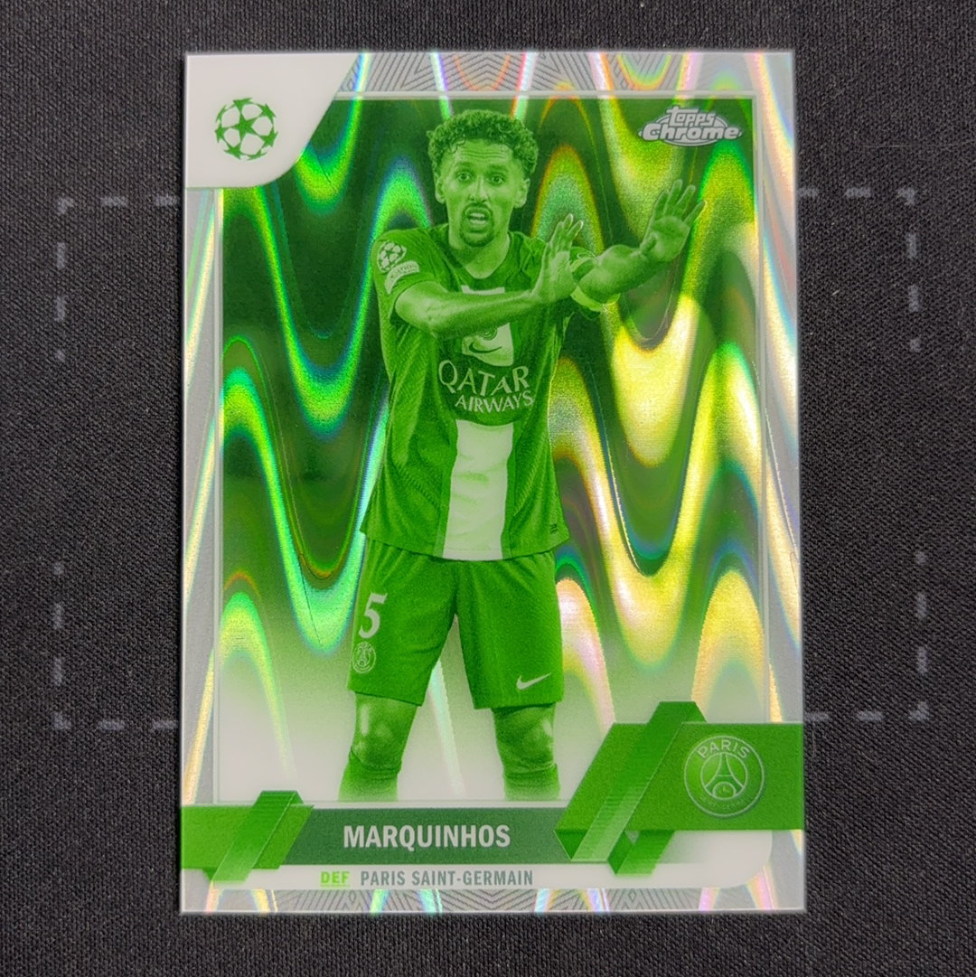 2023 Topps Chrome Marquinhos 【十一拍卖】马尔基尼奥斯 225编 夜光波纹折 折射 巴黎圣日尔曼 罗马 巴西 阿森纳 TC 欧战 卡品如图 只合当日运费-623