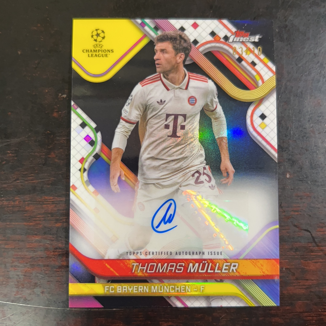2024-25 Topps Finest Thomas Müller 托马斯穆勒 拜仁慕尼黑 德甲 德国 欧冠 欧洲杯 世界杯冠军 黑折 10编 3/10 国家队加法同背 完美签字 实卡精美 屁屁卡卡