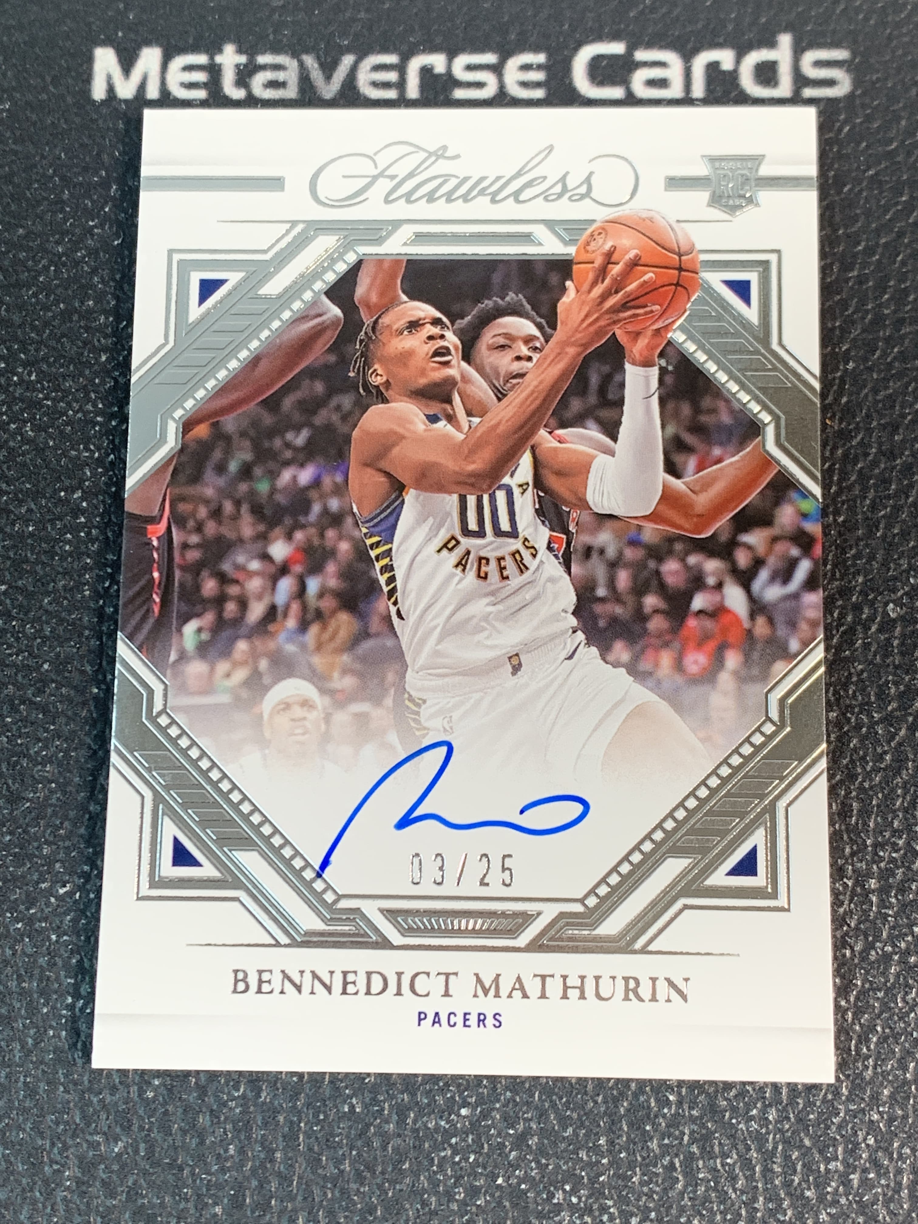 【元宇宙拍卖】Mag总028:2022-23 Panini Flawless Bennedict Mathurin 手提 马图林 马瑟林 步行者 新秀RC Finishes 绝杀签 签字 卡签 03/25编 微瑕如图 专收收藏必备 未来可期