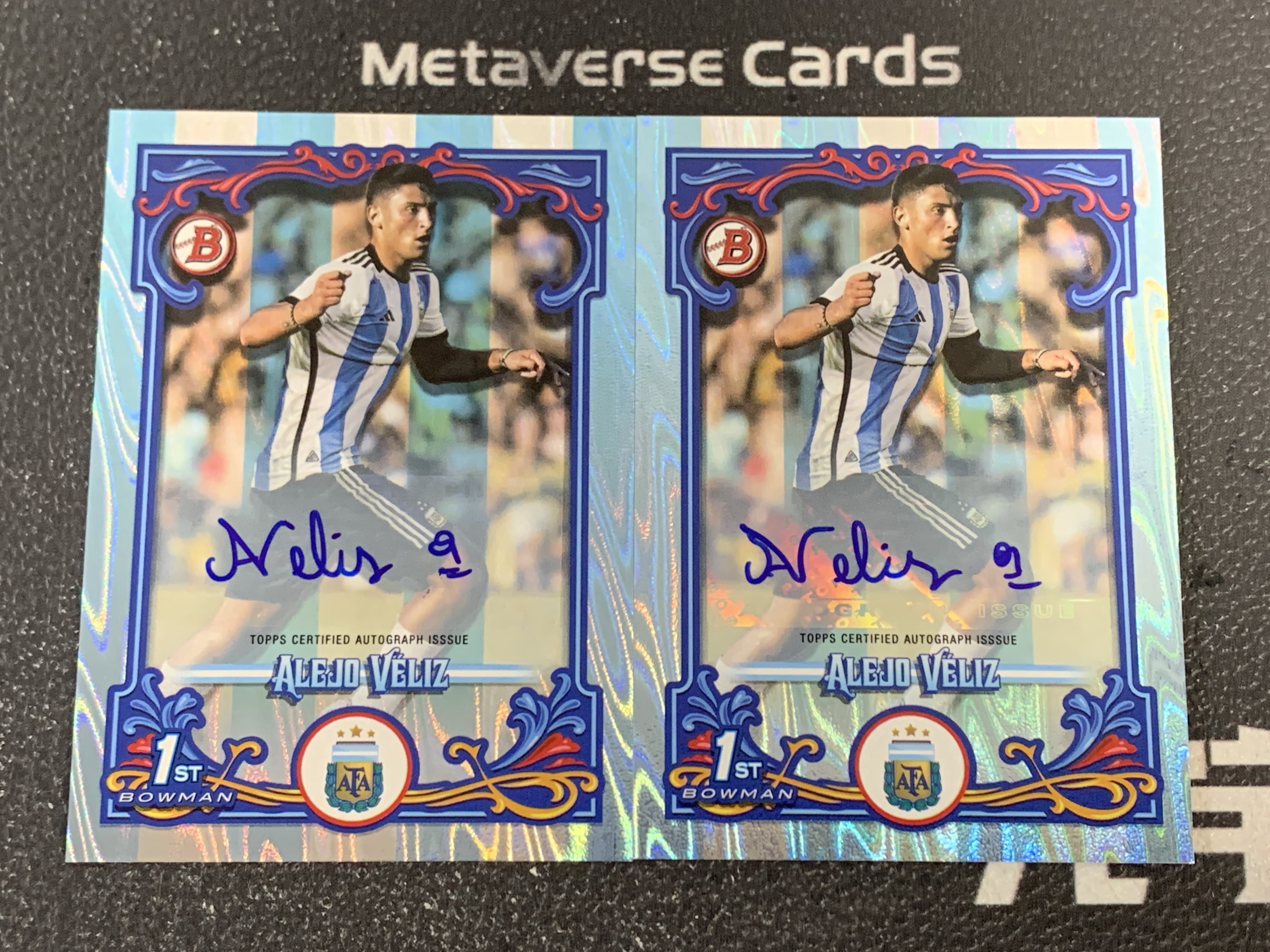 【元宇宙拍卖】老同学016:2023 Topps Fileteado Alejo Veliz 菲勒特 阿根廷队盒 阿莱霍 贝利斯 热刺 西班牙人 Bowman 1st 天蓝 蓝白探戈折 /99编 2张打包lot