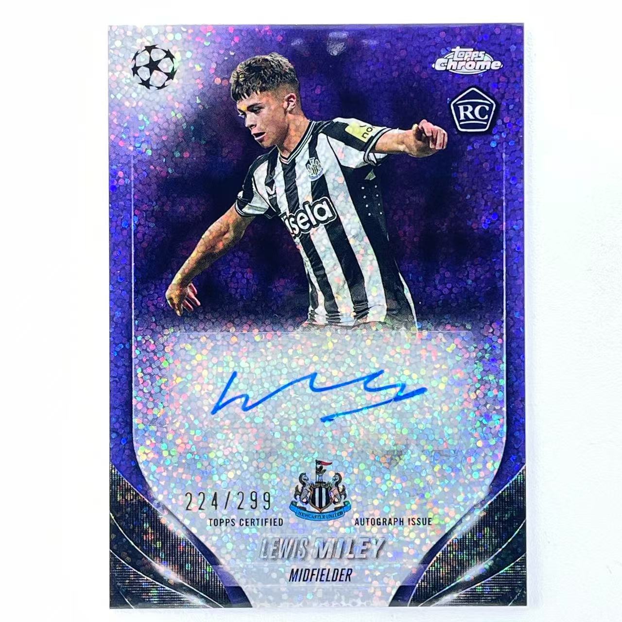 E 2023-24 Topps Chrome Lewis Miley RC 刘易斯 米利 麦利 299编 紫碎点折 折射 纽卡斯尔联 英格兰 新秀 欧冠 TC 轻印如图 初七#