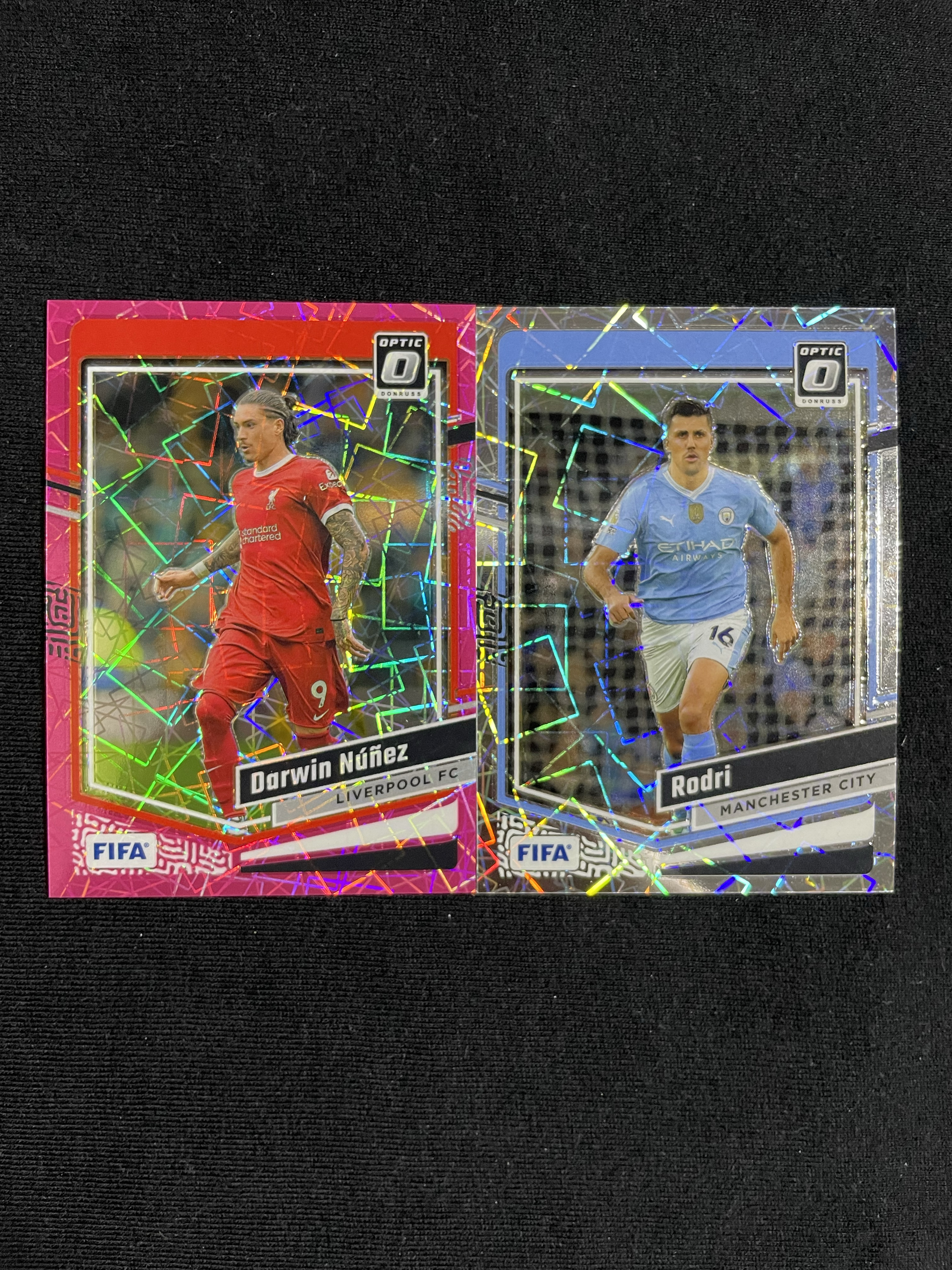 2023-24 Panini Donruss Darwin Nunez 【苦茶子拍卖】达尔文 努涅斯 杜蕾斯op 99编 粉镭射折 罗德里 银镭射折 利物浦 曼城 乌拉圭 西班牙 两张打包 不保卡品