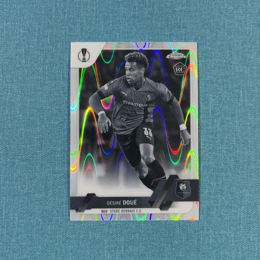 2021-22 Topps Chrome 欧冠 Desire Doue 杜埃 新秀 RC 黑白波纹折 雷恩 巴黎圣日耳曼 金童奖最大热门 卡品如图 DZQ