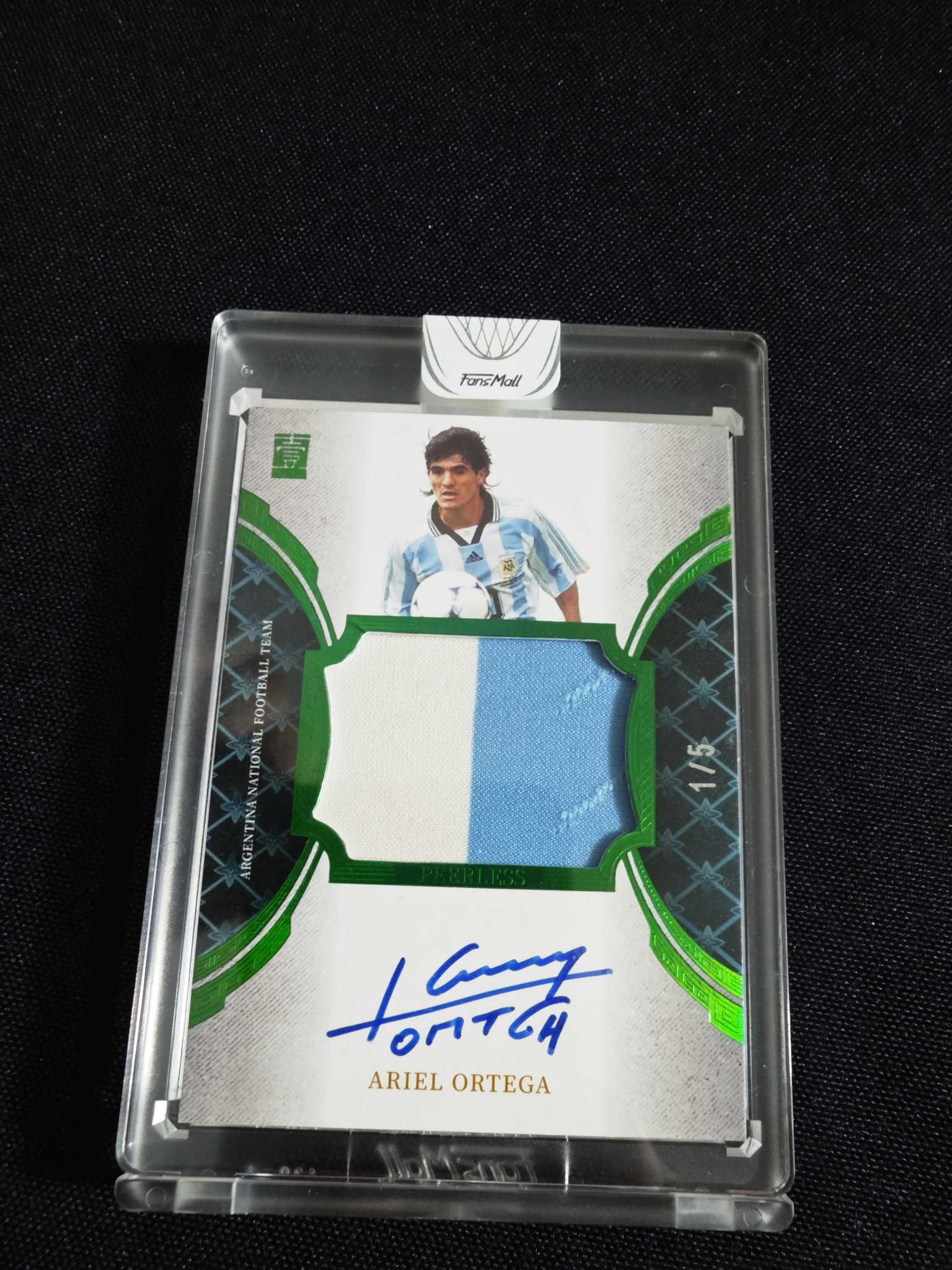【小灰机】2022 fansmall 范斯猫 阿根廷队盒 壹系列 阿里尔 奥特加 Ariel Ortega 球衣物料 双色暴力切割 签字卡 卡签 1/5编 绿平行 原封砖 lion