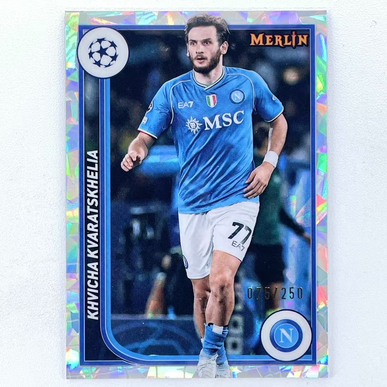 K 2023-24 Topps Merlin Chrome Khvicha Kvaratskhelia 科瓦拉茨赫利亚 格鲁吉亚 那不勒斯 K77 巴黎圣日耳曼 欧冠 梅林 250编 银碎冰折 折射 轻印如图 初七#