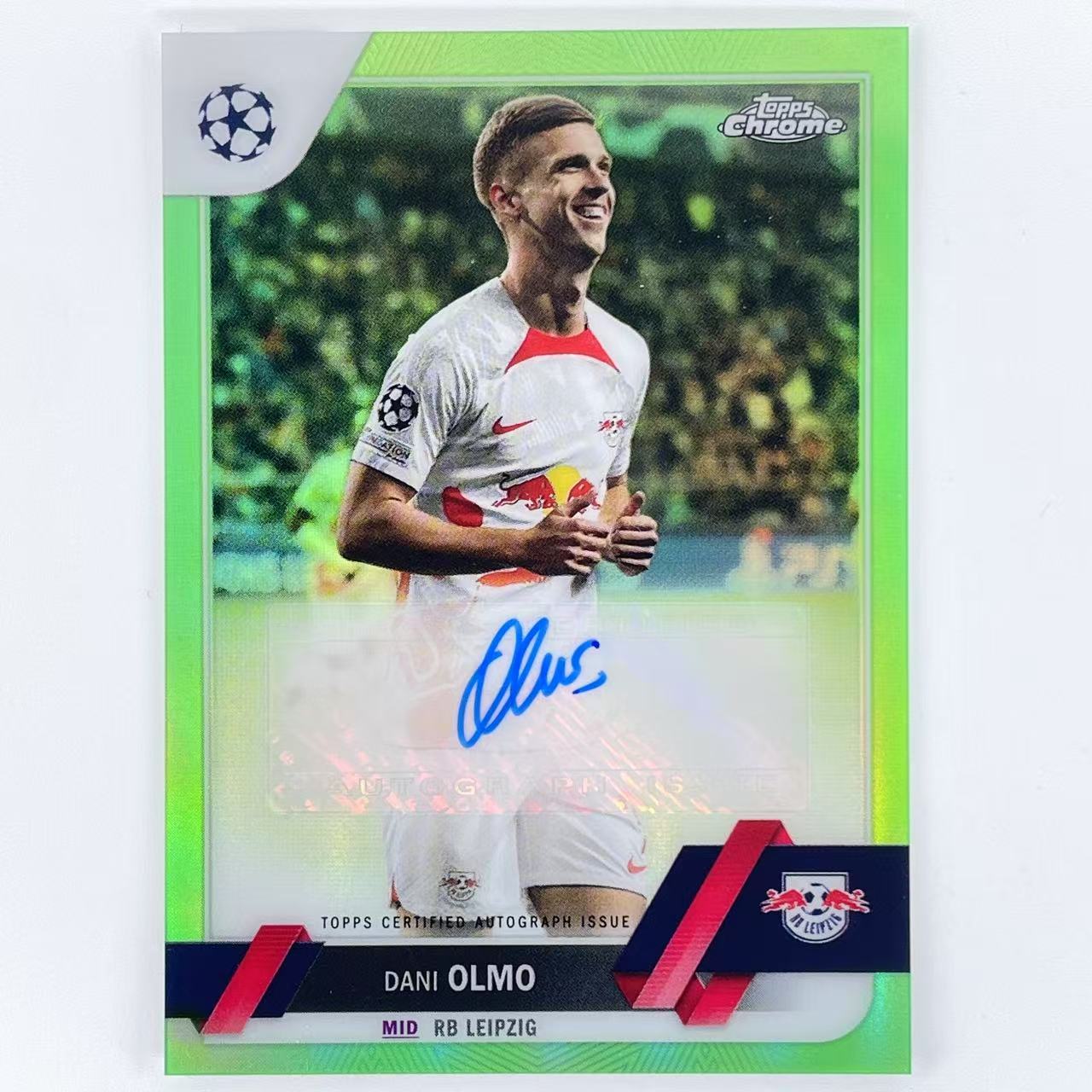 L 2022-23 Topps Chrome Dani Olmo 达尼 奥尔莫 莱比锡红牛 巴萨 巴塞罗那 西班牙 欧冠 TC 99编 签字 签名 霓虹绿折 折射 轻印如图 众孚天猪@4