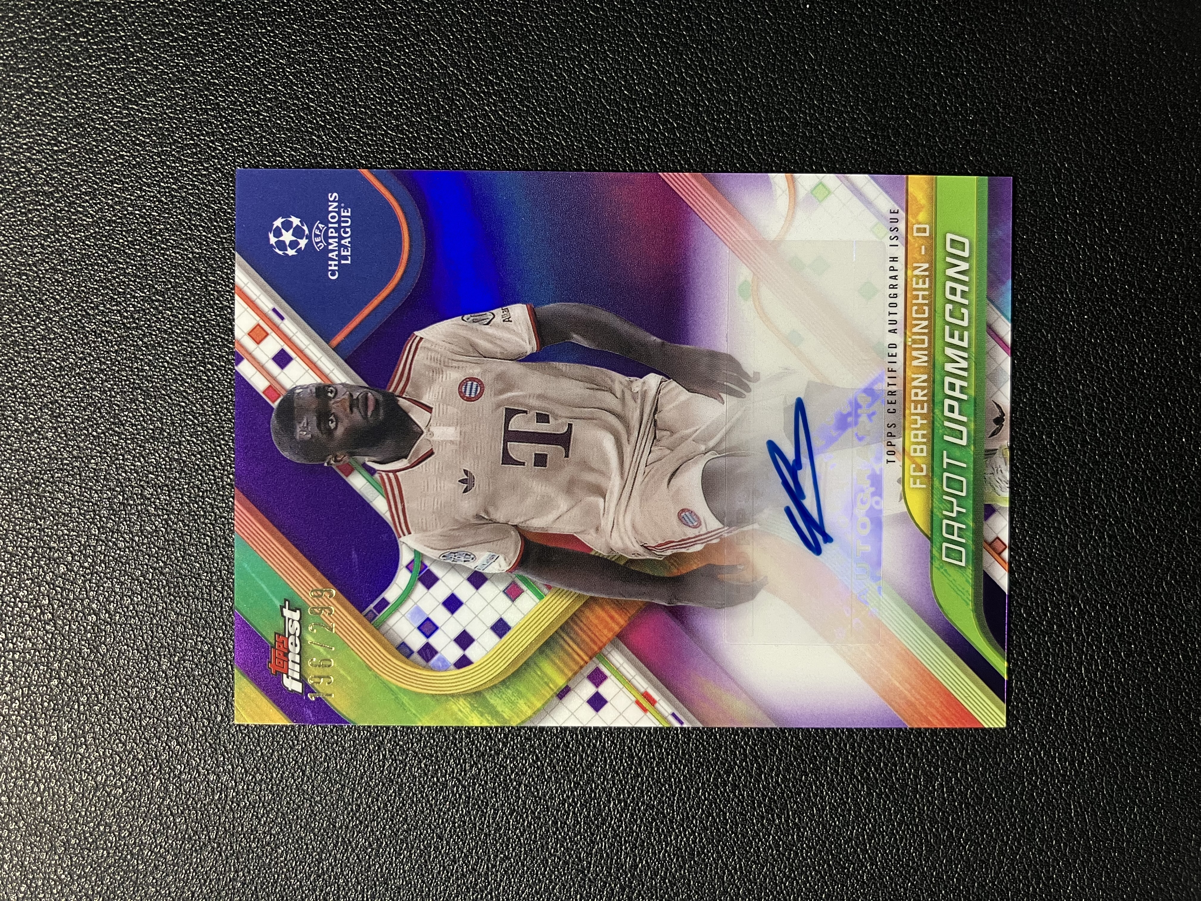 2025 Topps Finest Dayot Upamecano 欧冠Finest系列 于帕梅卡诺 196/299编 紫折签 签字 拜仁 法国 德甲冠军中卫 卡品如图 B110