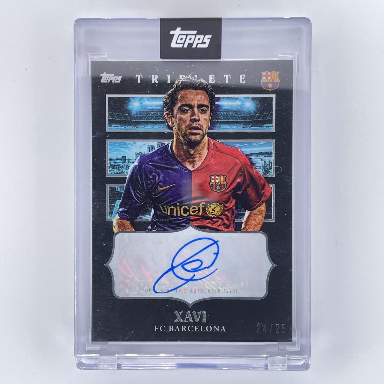 M 2024 Topps Barcelona Triplete Xavi Hernandez 哈维 埃尔南德斯 西班牙 巴塞罗那 巴萨三冠王 高端队盒 24/25编 签字 签名 蓝平行 原封砖 砖面微瑕 pedri@1