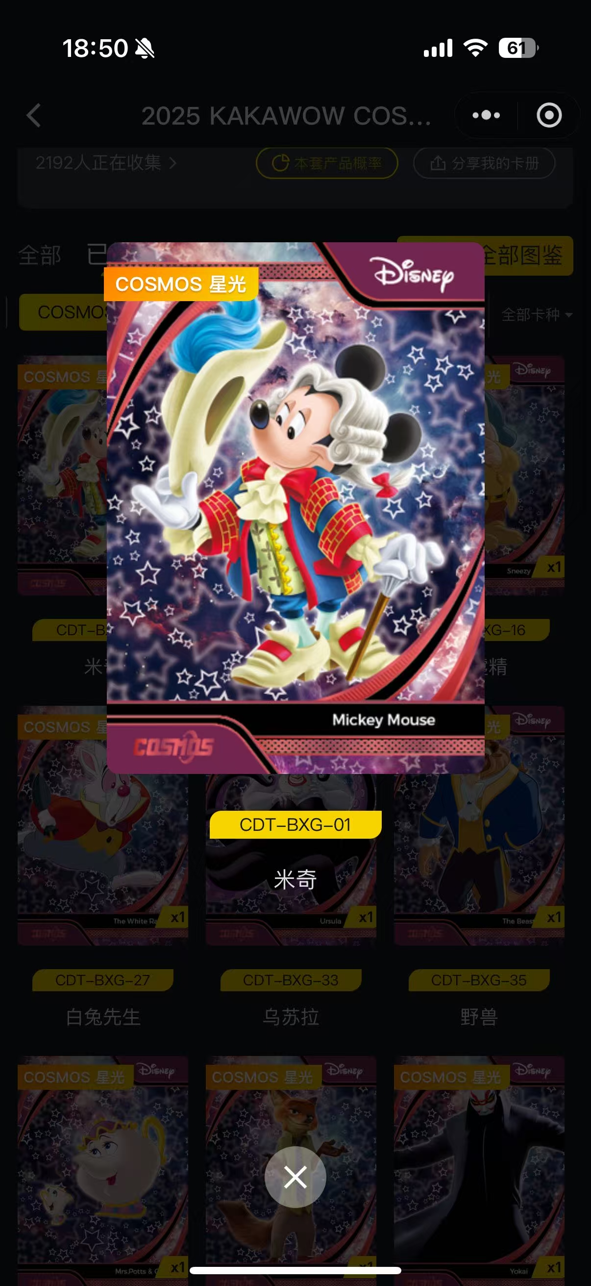 2025 Kakawow Disney 迪士尼 卡卡沃官方正版授权 迪士尼系列官方收藏卡 COSMOS珍藏卡-星光100编 人物:米奇 卡品如图 不保卡品(排骨)