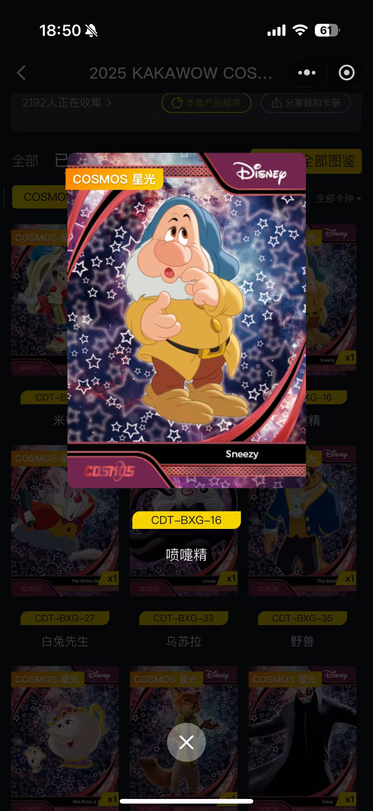 2025 Kakawow Disney 迪士尼 卡卡沃官方正版授权 迪士尼系列官方收藏卡 COSMOS珍藏卡-星光100编 人物:喷嚏精 卡品如图 不保卡品(排骨)
