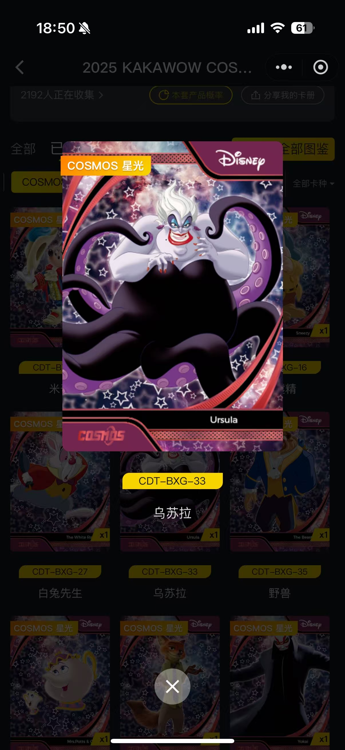 2025 Kakawow Disney 迪士尼 卡卡沃官方正版授权 迪士尼系列官方收藏卡 COSMOS珍藏卡-星光100编 人物:乌苏拉 卡品如图 不保卡品(排骨)
