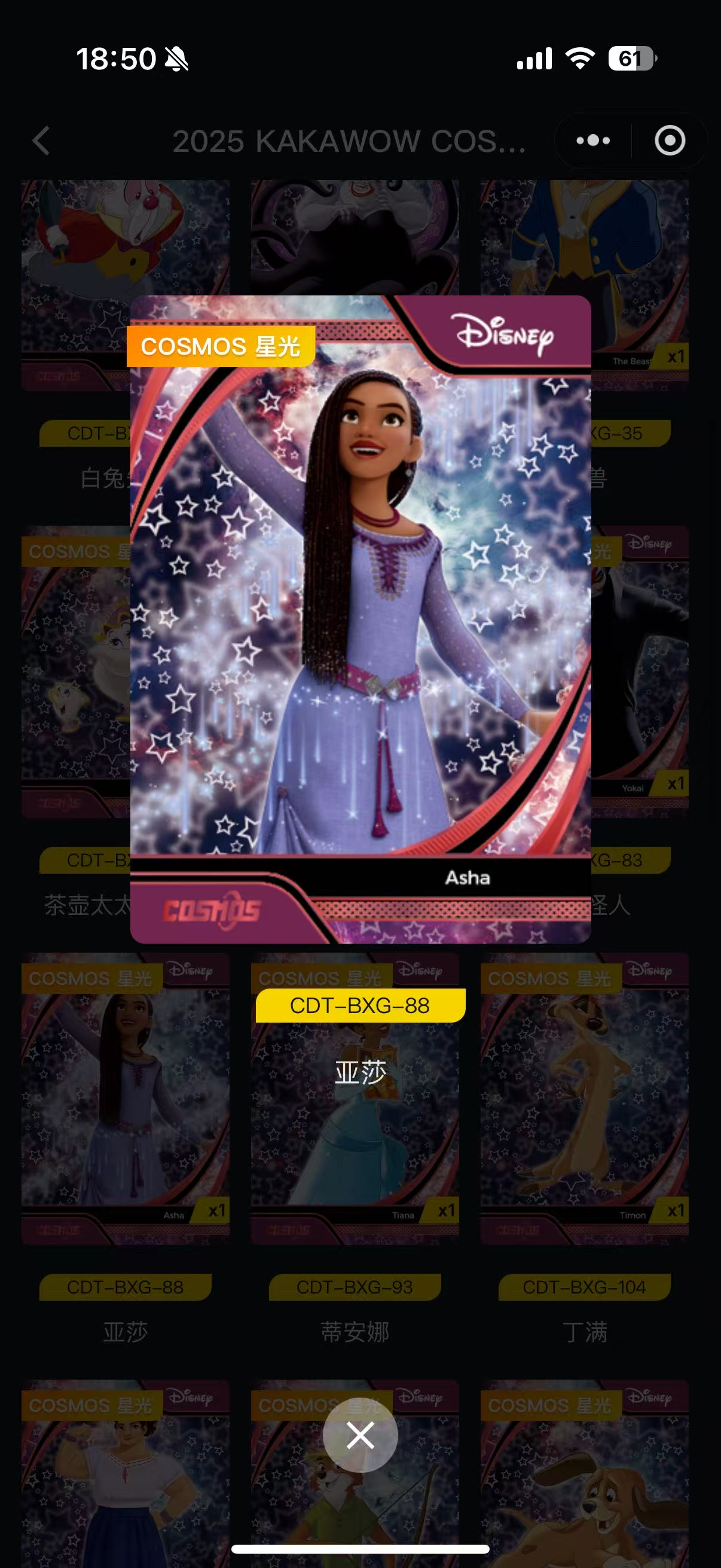2025 Kakawow Disney 迪士尼 卡卡沃官方正版授权 迪士尼系列官方收藏卡 COSMOS珍藏卡-星光100编 人物:亚莎 卡品如图 不保卡品(排骨)