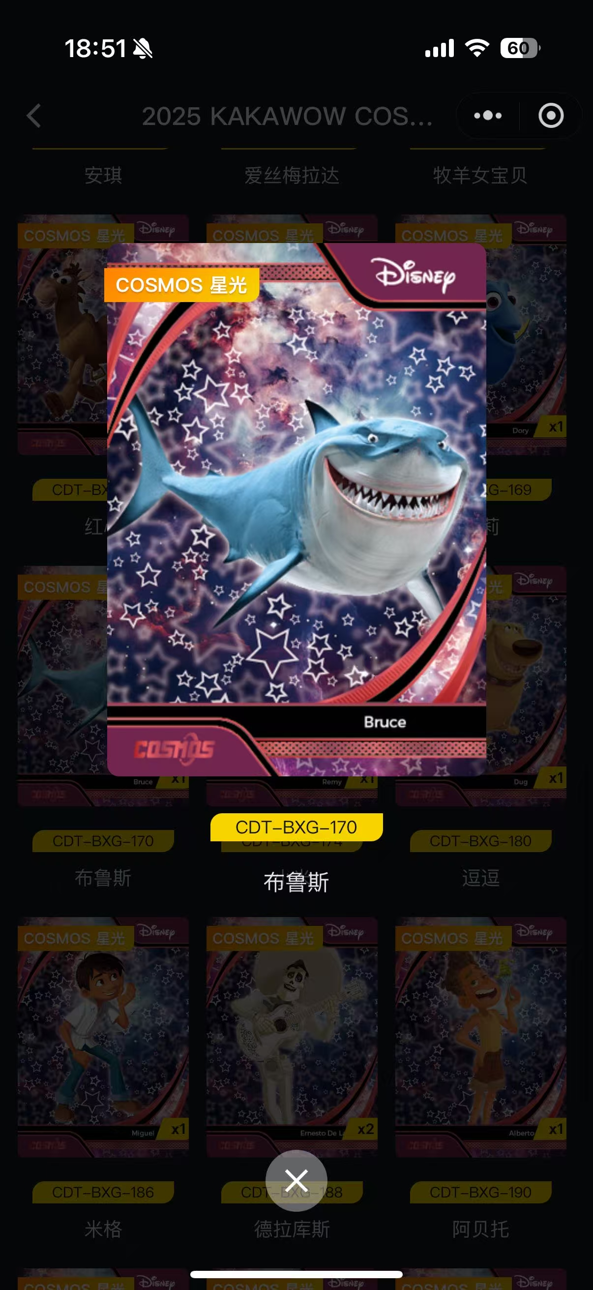 2025 Kakawow Disney 迪士尼 卡卡沃官方正版授权 迪士尼系列官方收藏卡 COSMOS珍藏卡-星光100编 人物:布鲁斯 卡品如图 不保卡品(排骨)