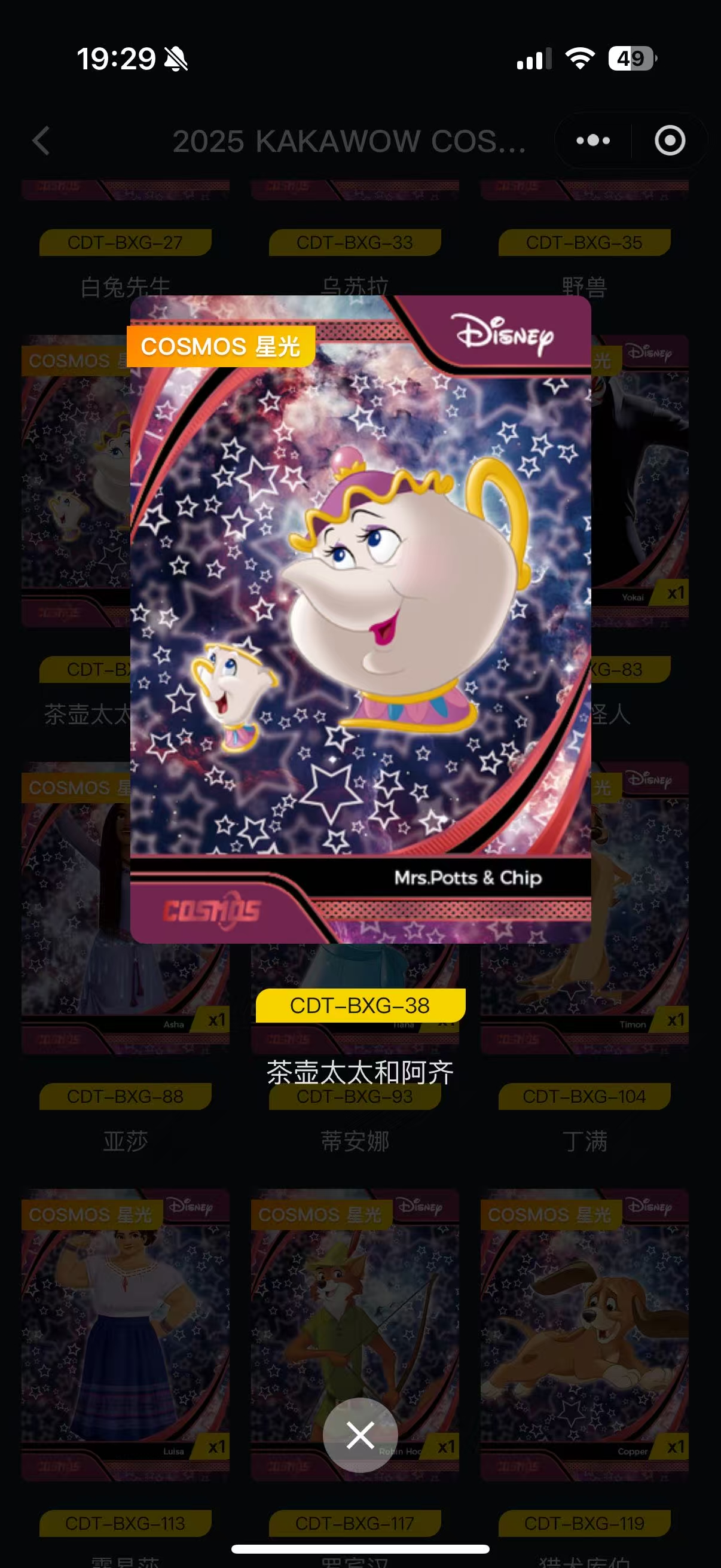 2025 Kakawow Disney 迪士尼 卡卡沃官方正版授权 迪士尼系列官方收藏卡 COSMOS珍藏卡-星光100编 人物:茶壶太太和阿齐 卡品如图 不保卡品(排骨)