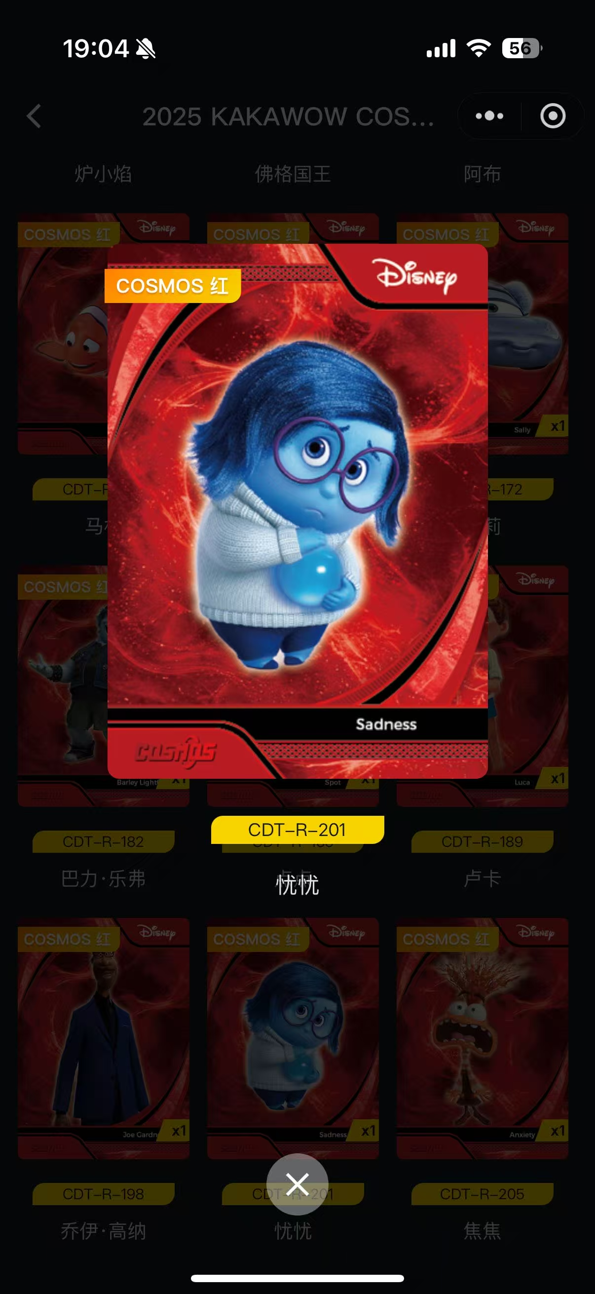 2025 Kakawow Disney 迪士尼 卡卡沃官方正版授权 迪士尼系列官方收藏卡 COSMOS珍藏卡-红75编 人物:忧忧 卡品如图 不保卡品(排骨)