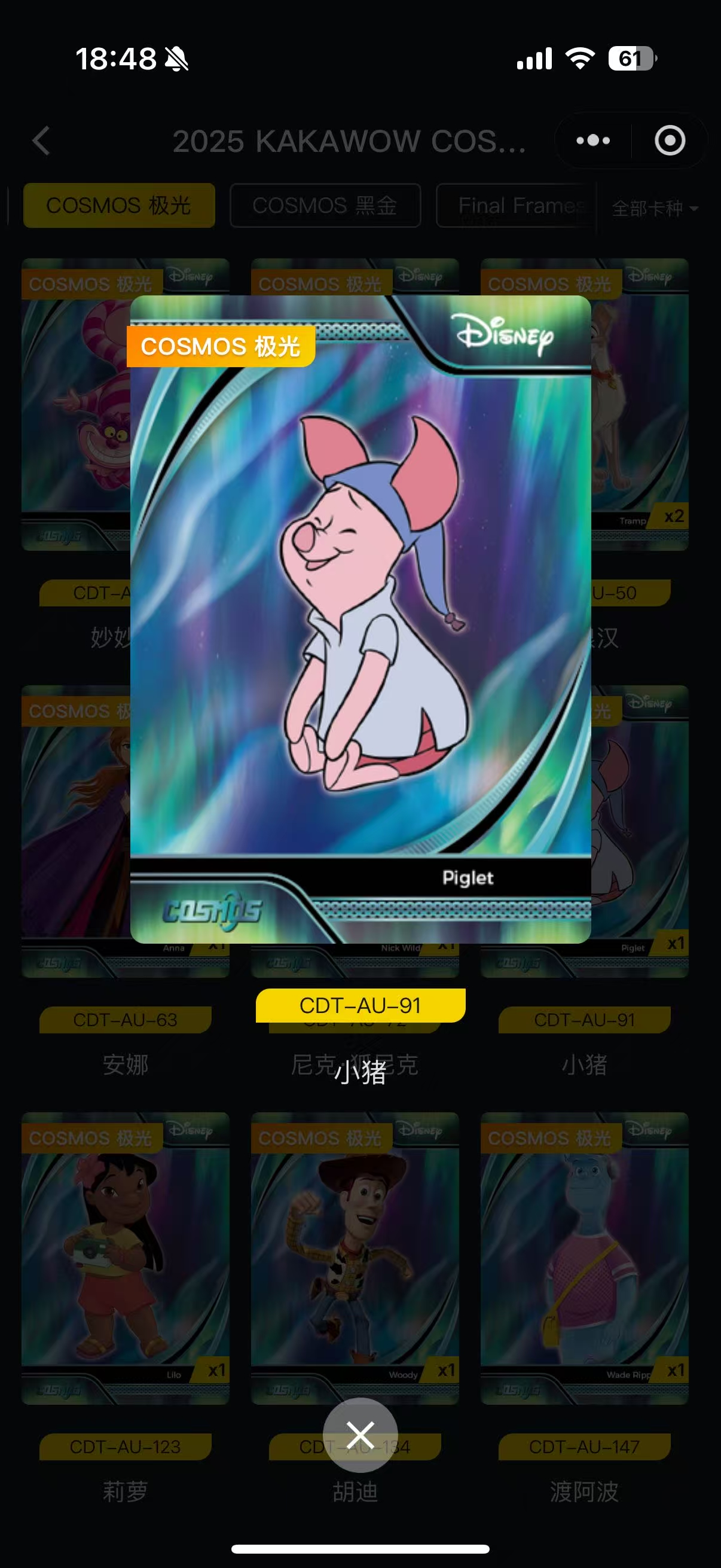 2025 Kakawow Disney 迪士尼 卡卡沃官方正版授权 迪士尼系列官方收藏卡 COSMOS珍藏卡-极光45编 人物:小猪 卡品如图 不保卡品(排骨)