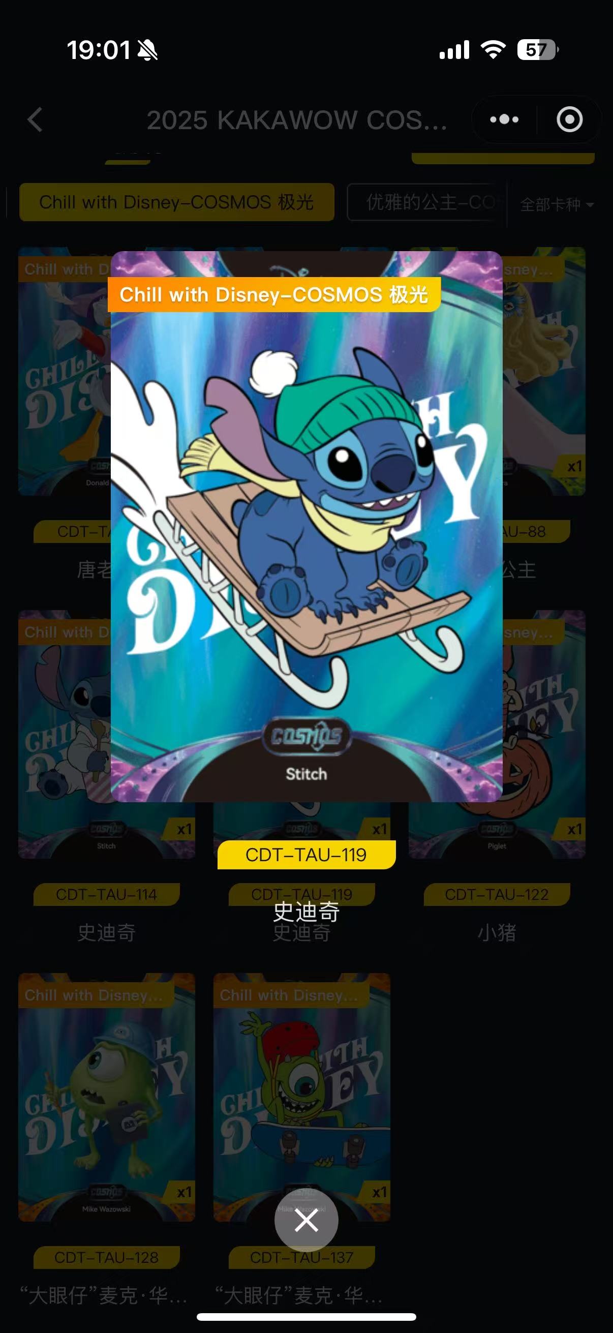 2025 Kakawow Disney 迪士尼 卡卡沃官方正版授权 迪士尼系列官方收藏卡 Chill with Disney-COSMOS极光45编 史迪奇 卡品如图 不保卡品(排骨)
