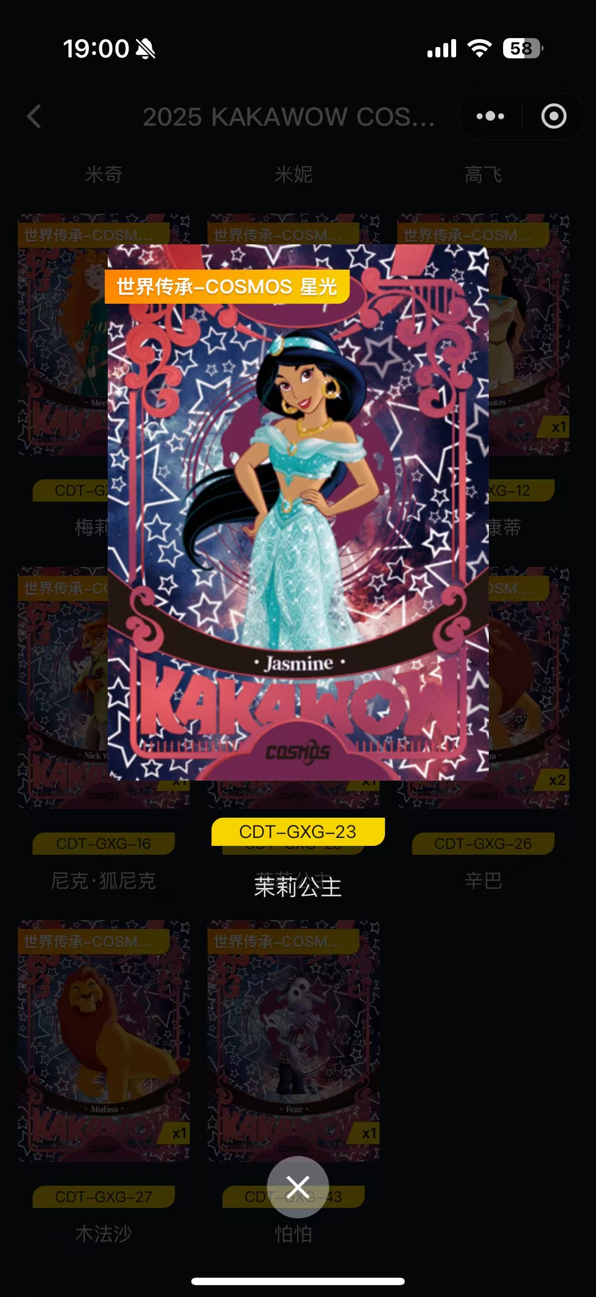 2025 Kakawow Disney 迪士尼 卡卡沃官方正版授权 迪士尼系列官方收藏卡 世界传承-COSMOS星光100编 人物:茉莉公主 卡品如图 不保卡品(排骨)