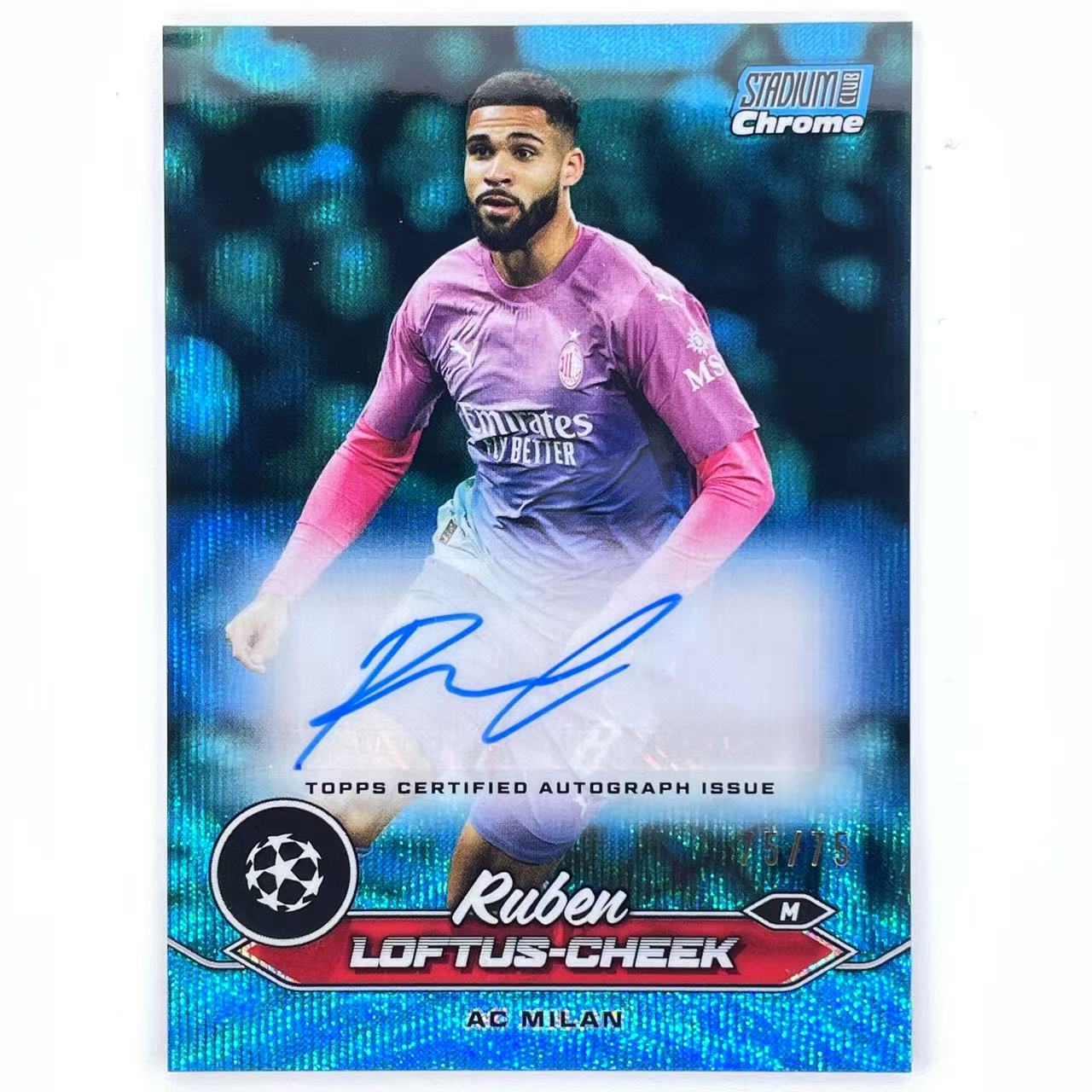 2023-24 Topps Chrome Ruben Loftus Cheek 欧冠竞技场 英格兰 AC米兰 切尔西 奇克 签字 75编 尾编 约1/1 蓝波纹折 莱奥卡马尔达希门尼斯莫德里奇队友 E