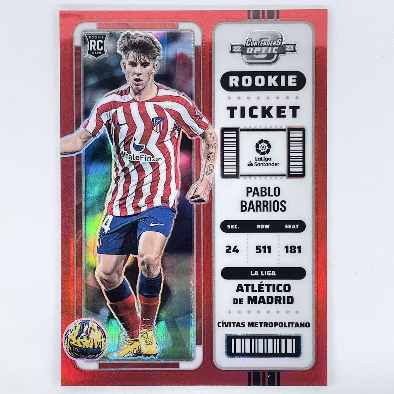 2022-23 Panini Chronicles Pablo Barrios 编年史 西班牙 马竞 巴里奥斯 新秀 球票 99编 红折 未来可期 阿尔瓦雷斯格列兹曼西蒙尼利诺加拉格尔勒诺尔芒队友 E