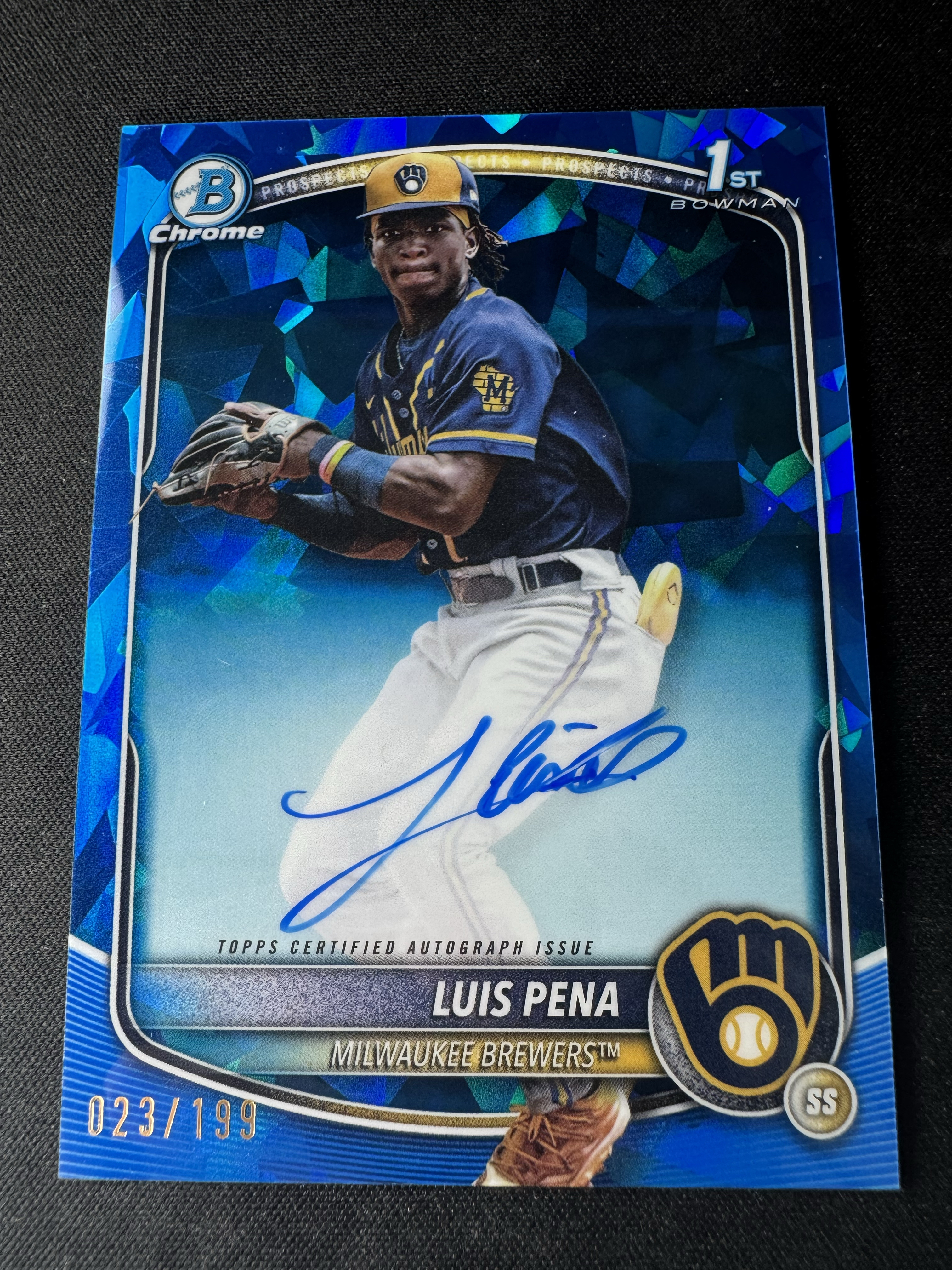 2025 TOPPS BOWMAN CHROME SAPPHIRE Luis Pena RC 【科科 尤因】2025 棒球 蓝宝石 路易斯 佩纳 新秀 签字 023/199编 同背 1/1 卡品如图